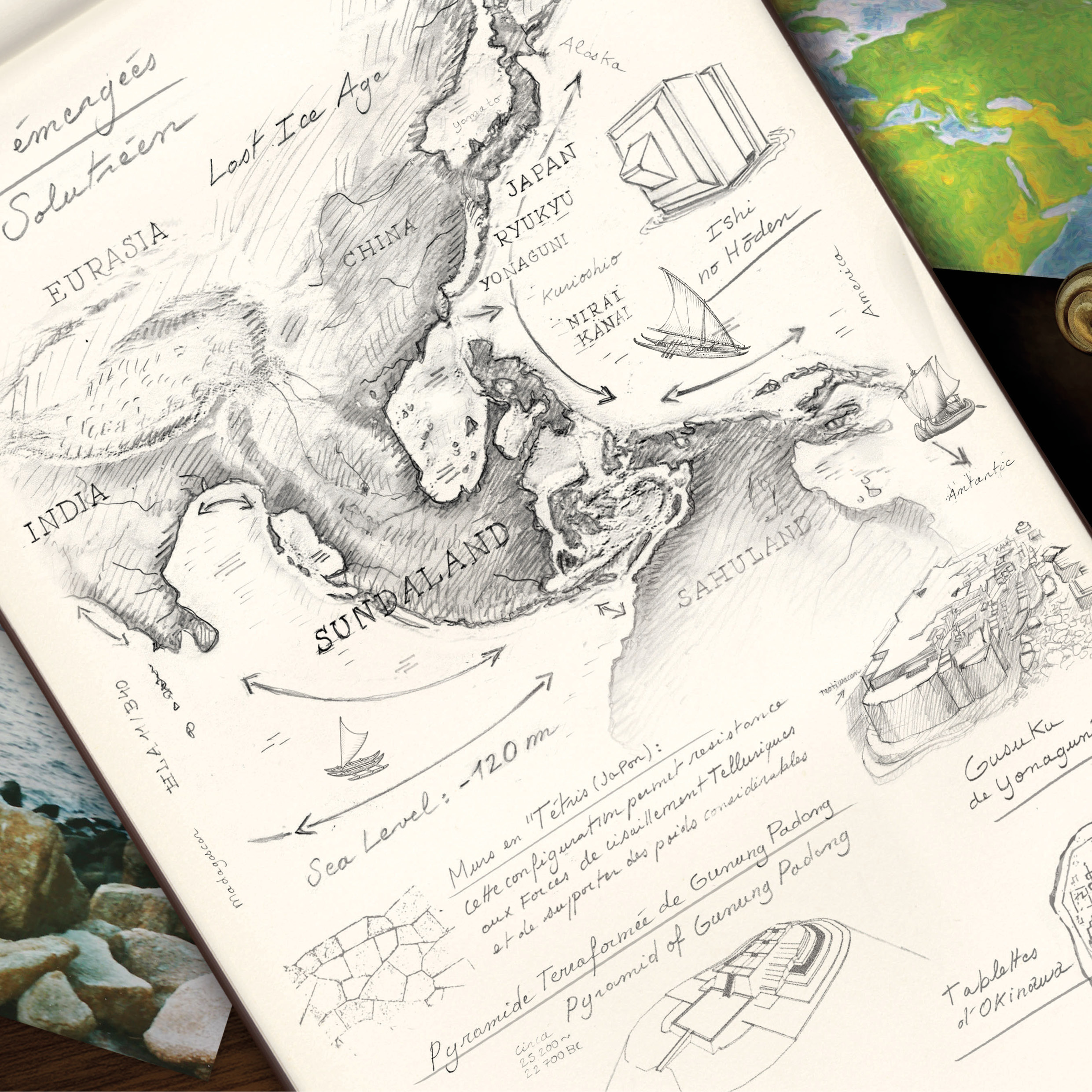 Le lecteur explore ainsi avec l’auteur, grâce à ce cahier de voyage en 3 tomes, les vestiges de ces mondes oubliés, sur la piste des Anciens au pays du Soleil Levant. Chaque page riche en croquis, dessins et photos des sites est une invitation à rêver et imaginer ces temps anciens et ces civilisations oubliées à travers d’étonnants monuments mais aussi d’artéfacts qui peuvent nous sembler étranges aujourd’hui.