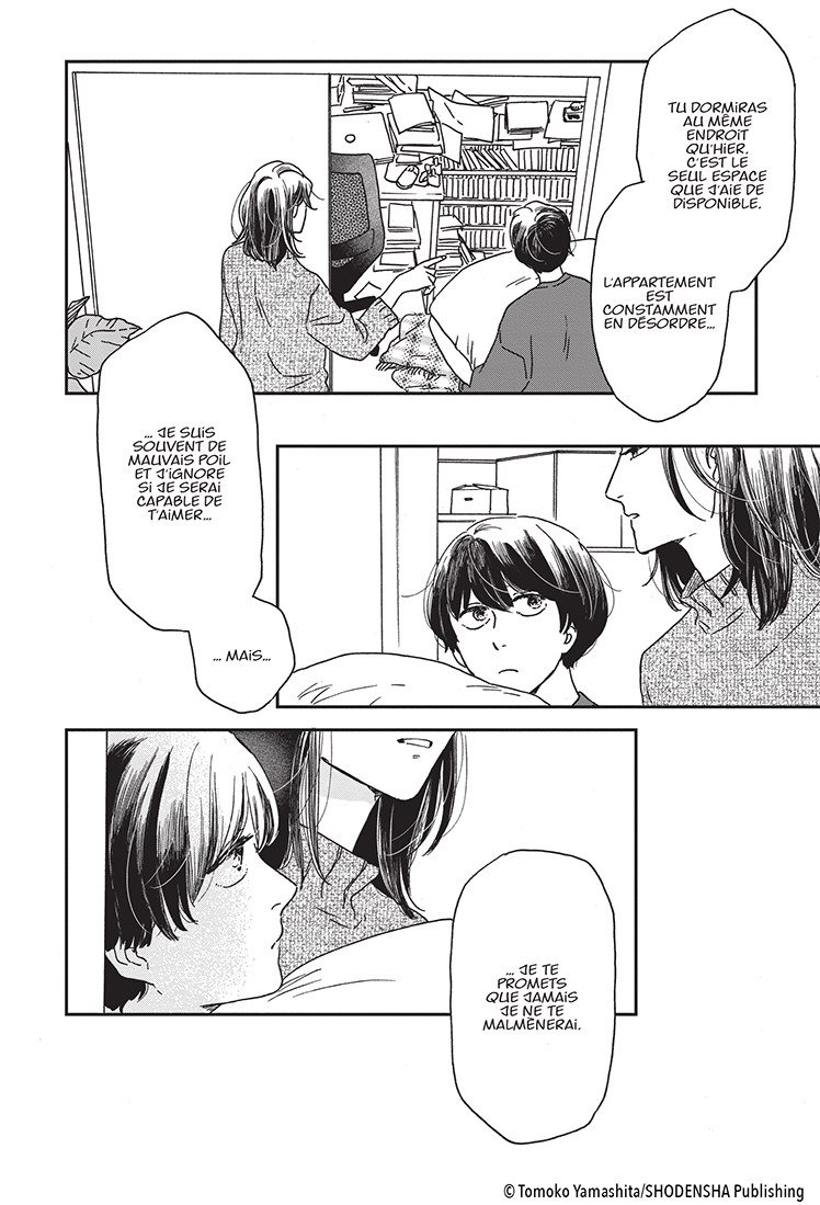 De la romance dans une dystopie SF : un manga qui nous avait déjà tapé dans l’œil, tout comme au jury des Taisho Awards 2021. D’autant que la mangaka n’est pas une inconnu : Jun MAYUZUKI, mangaka de Après la pluie, continue ses merveilles de mise en scène et de cadrage, tout en subtilité et en finesse, mettant magiquement en scène le quotidien avec de nombreuses planches sans paroles mais qui vous baigne dans une lecture des plus immersives.