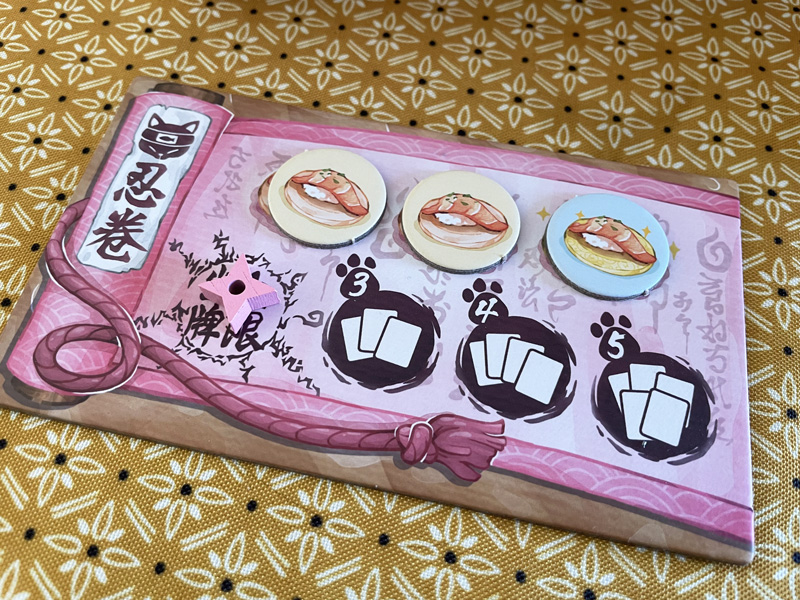 De mon côté, le jeu ne m’a pas spécialement emballé car je ne suis pas une adepte des jeux de hasard. Si on possède un avoir un objectif personnel un rien similaire avec un autre joueur, on peut rapidement se faire accabler par ce dernier. Ajoutez à cela que si la chance aux cartes n’est pas avec vous, vous vous retrouvez rapidement à avoir un score ridicule comparé aux autres joueurs. Selon les objectifs que l’on pioche et à cause de l’aléatoire, Ike no Koï peut donc pêcher par son déséquilibre si la chance privilégie certains joueurs, difficulté des jeux de «Stop ou Encore». Malgré cela, on ne peut pas lui retirer son accessibilité, la rapidité de ses parties et son très joli matériel, cartes comme jetons, qui font amplement le travail. J’y vois également l’occasion de pouvoir apprendre aux enfants à compter, autant parce que les cartes sont numérotées que parce qu’il n’existe qu’un certain nombre de carpes par numéro, ainsi que de travailler sur sa capacité à ne pas en vouloir trop et à rester raisonnable pour avancer, certes plus lentement, mais peut-être plus loin.
