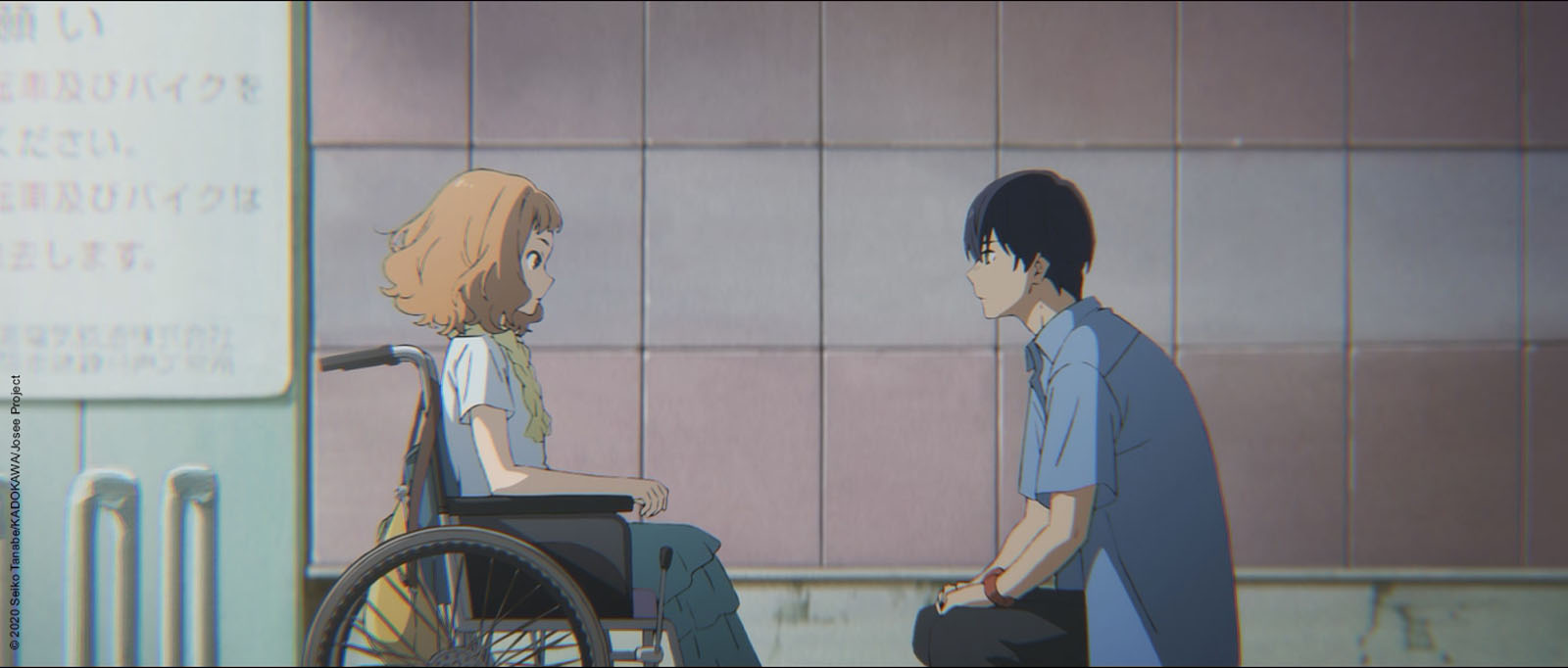En plus de traiter d’une romance plutôt réaliste, le film aborde des sujets variés et pas toujours mis en avant dans les histoires classiques tels que le handicap. On voit le monde à travers le regard de Josée, son ressenti, et l’aversion que témoignent les gens à son égard. L’une des scènes les plus marquantes et fortes reste sans doute celle où Josée essaie de réserver un ticket de train en autonomie, alors que les guichets ne sont absolument pas adaptés aux personnes en situation de handicap. Elle est perçue comme un poids, une intruse, par les passants de la gare, jusqu’à se faire bousculer violemment par un passant malpoli. Lorsque Tsuneo s’insurge, il décrète que c’est elle qui gêne le passage. Quelques mètres plus loin, le même passant bouscule une vieille dame, l’insulte, mais celle-ci le remet à sa place aussitôt. Cette scène nous permet de comprendre que la vision du handicap au Japon est encore très connotée et négative.