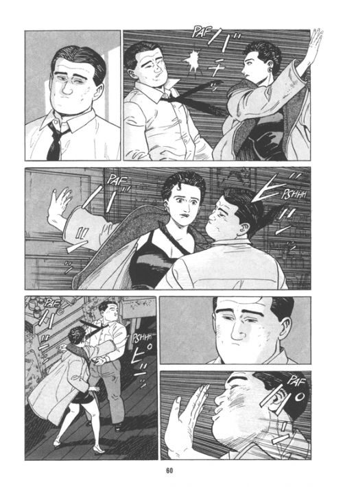 C’est ce qu’est Benkei, un assassin terrifiant, terriblement doué et déterminé, qui accomplit toujours ses missions, non sans les avoir soigneusement choisis avant de devenir, comme il le dit lui-même, un entremetteur de vengeance. L’homme est passionnant à plus d’un titre – parce qu’il est doué, déjà, en peinture comme en meurtre – et parce qu’il a battit une barrière infranchissable avec le monde qui l’entoure, ne laissant personne rentrer, mais ne laissant aucune émotion sortir… sauf à des rares moments, loin des regards, dans des cases que nous offre un Jirô TANIGUCHI au sommet de son art et de son style si cinématographique. Le dessinateur multiplie les techniques de mise en scène et graphiques, multiplie les genres graphiques et remplit son ouvrage de référence cinématographiques (Shining, Les Nerfs à vifs pour en citer deux).