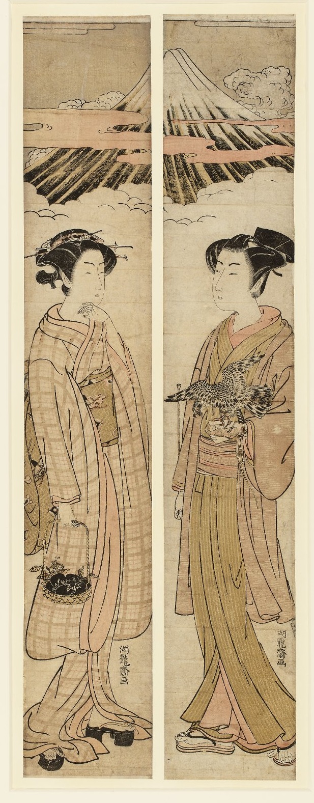 Koryusai ISODA, deux hashira-e se répondant, Le rêve du nouvel an, 1770
