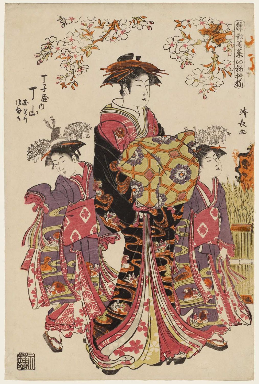 Kiyonaga TORII, Courtisane de la maison Chôjiya et ses kamuro (suivantes), Série des modèles pour la mode, 1782