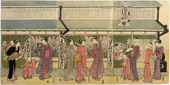 L’époque Edo développe une activité publicitaire qui, par bien des aspects, préfigure certaines pratiques contemporaines. Les estampes y jouent un rôle pionnier et certains des sujets les plus emblématiques des gravures entrent dans cette catégorie.