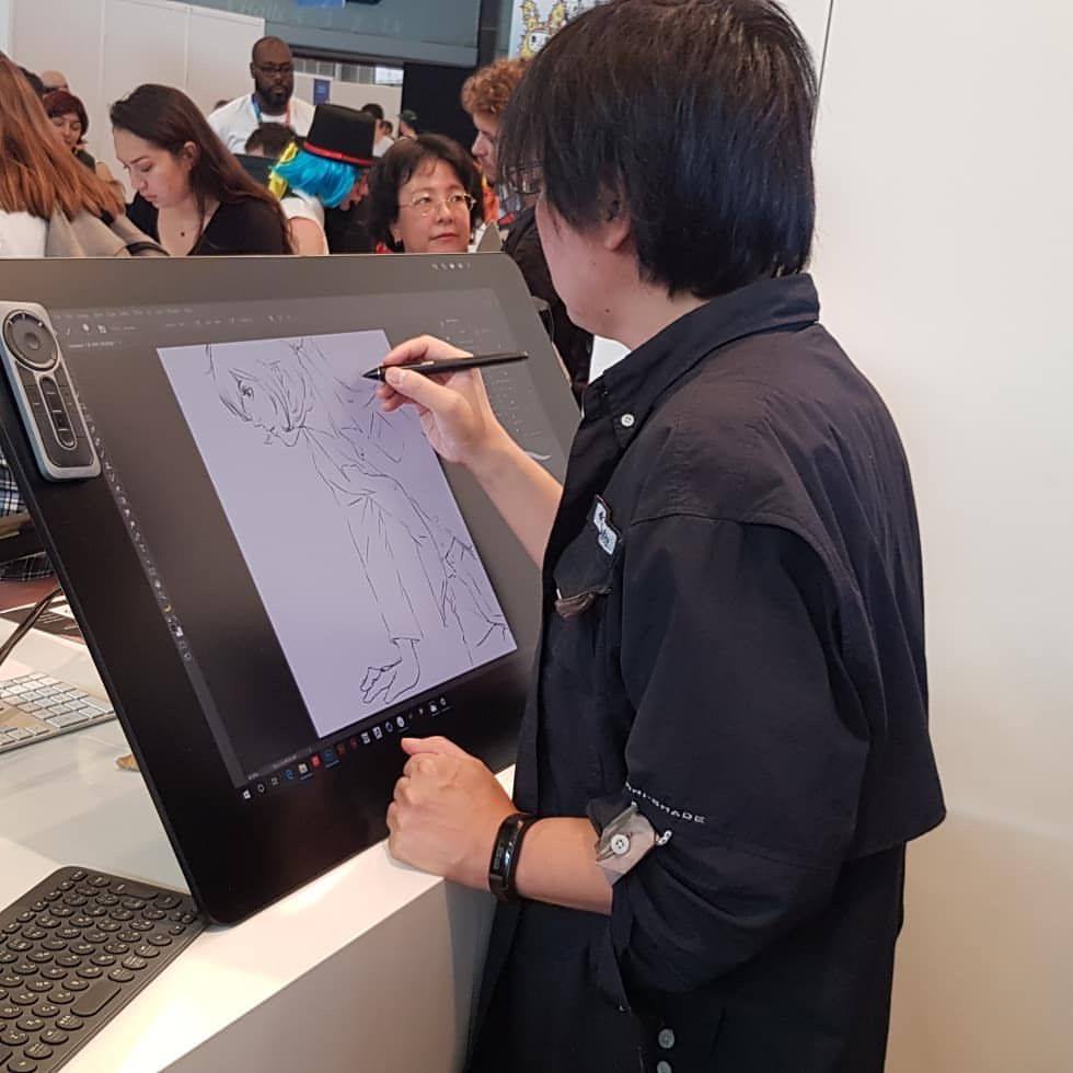 Jusqu’à présent, j’ai été invité en France, en Angleterre, en Italie, aux États-Unis, à Dubaï et en Chine. Je participe principalement à des conventions, mais je fais aussi de la peinture en live et des conférences dans les écoles, les bibliothèques, les musées, etc. en fonction de l’opportunité du voyage. En ce qui concerne les événements en France, j’ai été invité par WACOM à participer à Japan Expo 2019, et ce fut un magnifique événement. J’ai été impressionné par la façon dont le personnel comprenait non seulement la langue mais aussi la culture japonaise. Après l’événement, je me suis lié d’amitié avec un artiste que j’ai rencontré au stand Wacom, et il m’a guidé dans Paris pendant une demi-journée, me présentant le plus ancien magasin de fournitures d’art de Paris et la seule galerie d’art de la bande dessinée à Paris. C’était une expérience formidable. Quel dommage que la cathédrale Notre-Dame soit fermée, mais je suis allé à la Tour Eiffel. Après l’événement, j’ai passé le plus clair de mon temps, pendant cinq jours, à dessiner au Louvre.