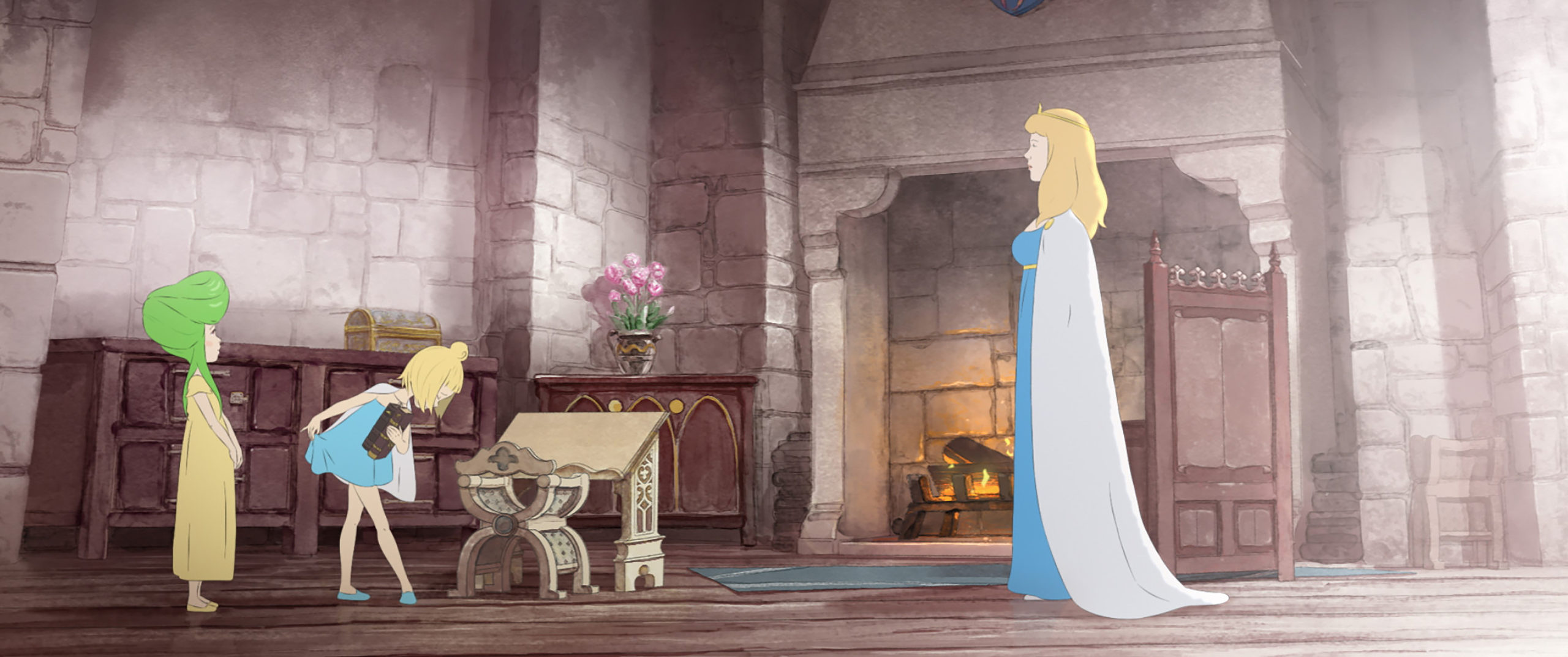 Poil et Princesse rendant visite à la Reine retenue prisonnière au sommet d’une tour du château © 2021 – Gebeka Films / Ankama Animations