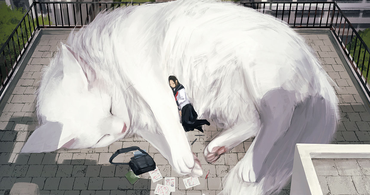 Lorsque l’on s’intéresse à Monokubo, on découvre tout d’abord l’univers animalier qu’il propose dans la grande majorité de ses œuvres. La comparaison avec les œuvres Ghibli est alors omniprésente : partout où l’artiste est présenté, on y voit citer le nom du studio. Pour autant, il est bien trop facile de limiter ses inspirations à Totoro et ses compagnons, comme s’ils avaient le monopole de tout ce qui touche aux animaux mignons, grands et enchanteurs. Tout d’abord, rappelons que l’artiste est japonais et que la mythologie japonaise est empreinte de créatures et de divinités à l’image des animaux. Les kami et les yōkai, par exemple, représentent à eux seuls tout un panel d’êtres fantastiques et fabuleux aux personnalités et aux desseins bien marqués. Le folklore nippon est si riche et diversifié qu’il semble évident de dire que le seul fait d’avoir grandi dans cette culture est une source d’inspiration primordiale voire primaire.