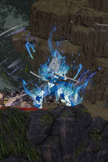 Dernier point du gameplay, enchaîner des combos rapidement permet d’activer la forme démoniaque. À mesure que l’on attaque des ennemis, le personnage s’entoure peu à peu d’une aura bleue et devient beaucoup plus puissant et rapide. Il est par conséquent recommandé d’être le plus souvent possible sous cette forme, surtout face aux boss, afin d’infliger le plus de dégâts par seconde possible. Les armes à deux lames, comme les éventails, permettent de l’accroître rapidement, surtout en jouant Renge qui est plus rapide que Fuma. Mais il faut faire attention car si on prend trop de temps à taper des ennemis, ou si on prend des dégâts, le personnage perd complètement sa forme démoniaque.