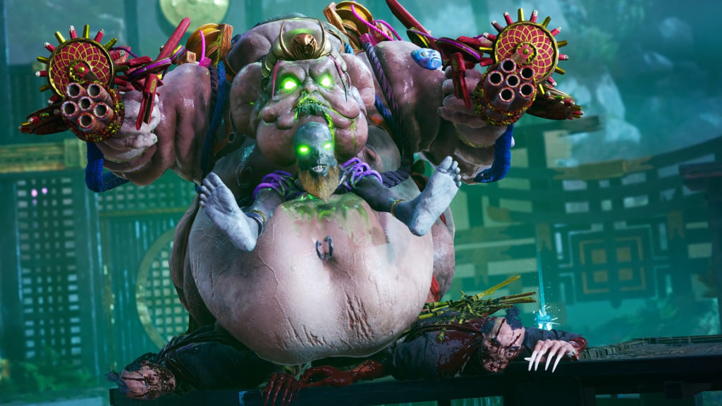 Dans ce 3e opus, sans surprise, l’histoire reprend là où Shadow Warrior 2 s’était arrêté. Grâce à des flash-backs et des explications, même les joueurs qui n’ont pas joué aux deux précédents opus n’auront pas de mal à comprendre les relations entre les personnages (peu nombreux, ce qui facilite aussi la tâche) et raccrocheront vite les wagons. Après avoir ouvert la porte des ombres, Lo Wang a ainsi libéré un dragon qui pompe l’énergie chi de la planète. Et bien évidemment, notre héros aura pour mission de sauver la Terre de cette apocalypse reptilienne. L’aventure serait moins drôle sans l’aide de son ennemi de toujours Orochi Zilla. Comme les nanars au cinéma, Shadow Warrior 3 ne brille pas par sa narration… Toutefois, si vous aimez les blagues en-dessous de la ceinture ou les ambiances déjantées à la Borderlands 2 par exemple, vous serez gâtés ! Les scènes avec le démon banni Hoji, sous la forme d’un masque au tout début, rehaussent le niveau. Malgré le faible nombre de personnages, on regrettera une faible utilisation de certains (la sorcière Motoko notamment). Si les phases de jeu sont fluides (graphiquement, rien d’éblouissant !), on regrettera lors des cinématiques des ralentissements et des bugs (supprimant la sauvegarde du jeu lorsque l’on redémarre la console d’ailleurs : pas merci aux sauvegardes automatiques !).