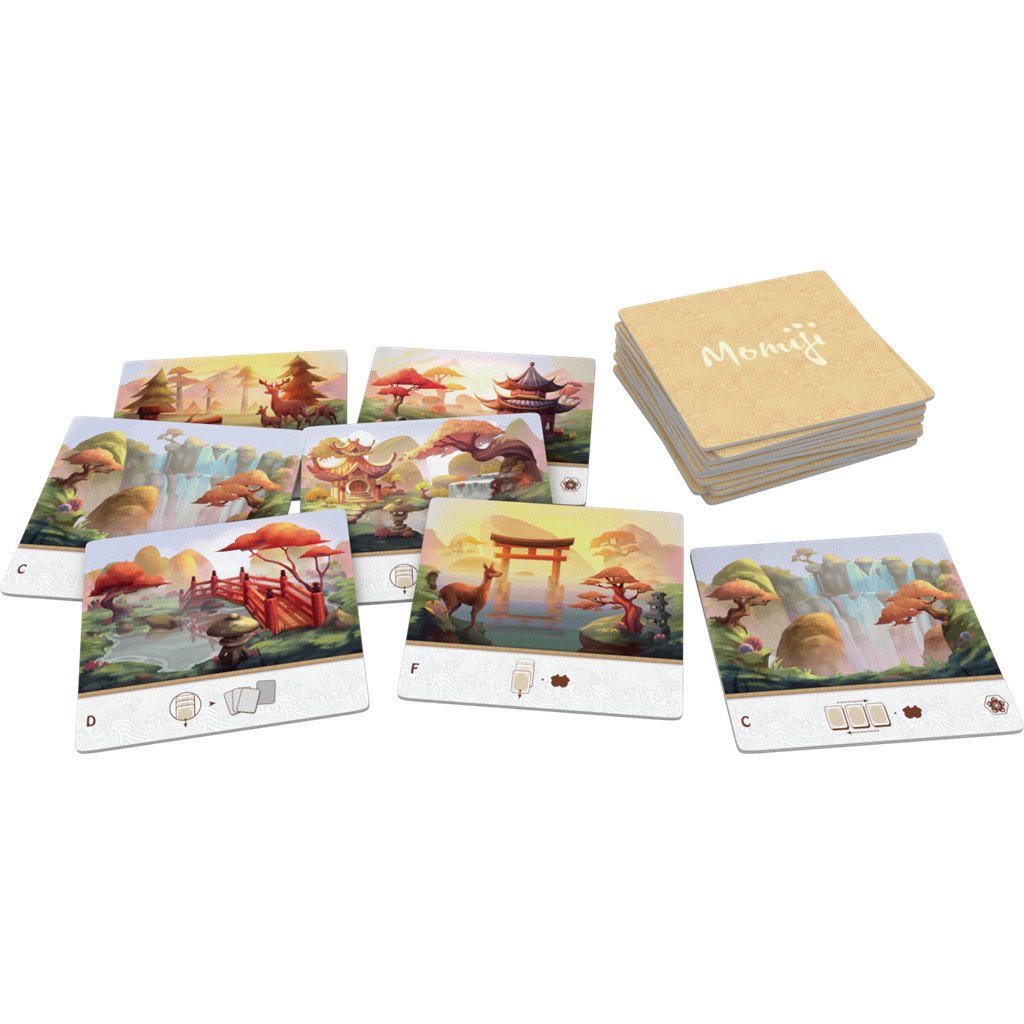 Momiji est un jeu de stratégie et de mémoire. Il faut aussi, et surtout savoir gérer son temps : dès lors que la pioche est terminée, chaque joueur joue un dernier tour. La partie peut donc aller très vite ! De plus, l’emplacement de vos différentes piles et la manière dont vous déposez vos cartes feuilles peuvent vous rapporter des points supplémentaires (les jetons glands) qui peuvent faire toute la différence lors du décompte final.