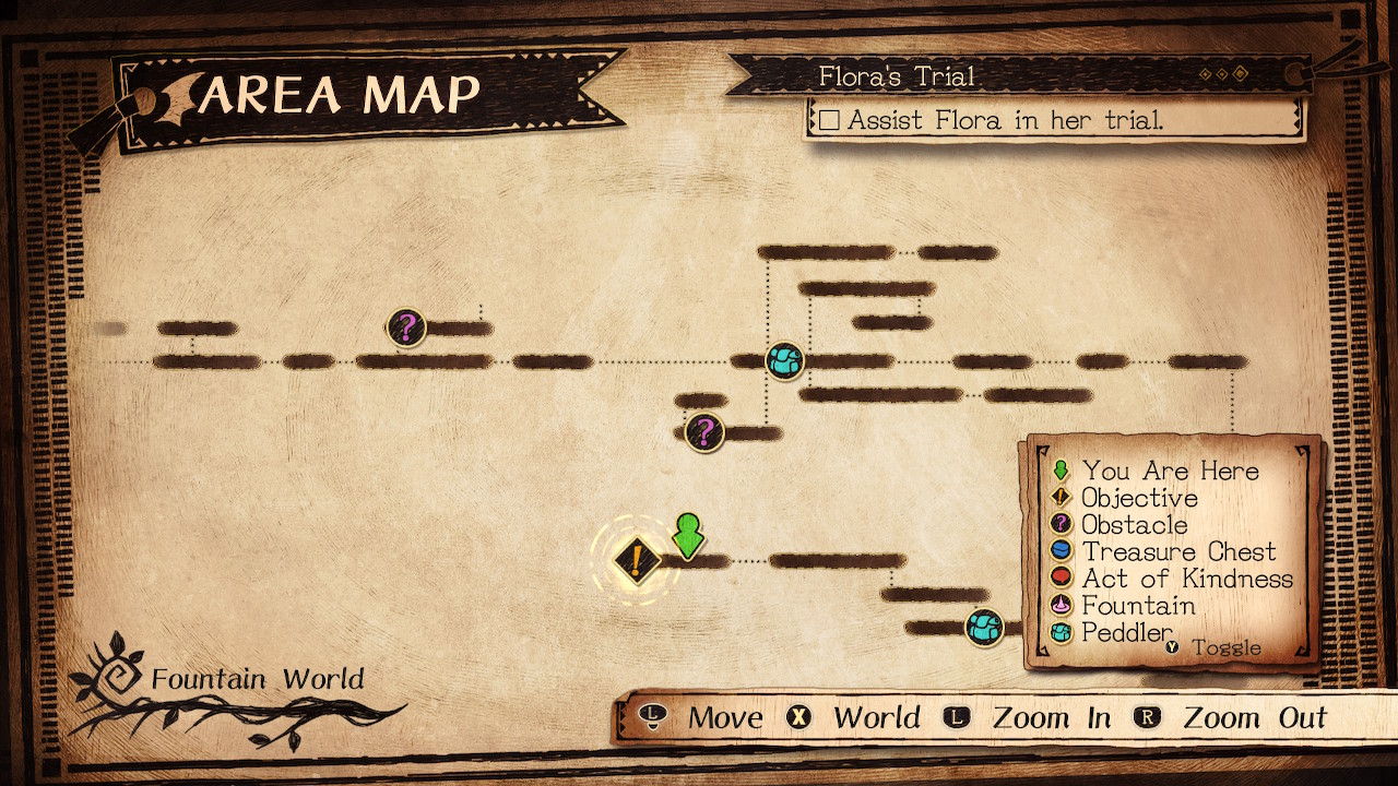 Il ne s’agit pas ici d’un gros RPG, ni de la grosse gestion de matériel comme on peut en avoir dans un Final Fantasy par exemple. On est davantage face à ce qui pourrait ressembler à un jeu indépendant, surtout qu’il ne faut qu’une douzaine d’heures pour venir à bout de l’histoire. On pourrait penser qu’il s’agit d’un jeu fait pour les experts, à défaut de se dire qu’il pourrait être pour les enfants, mais plusieurs défauts nous font plutôt pencher vers le fait qu’il s’agit là d’erreurs de la part des développeurs. Comme par exemple qu’il n’existe pas de checkpoint (une fois que l’on meurt, on se retrouve sur le menu principal pour reprendre notre dernière sauvegarde comme si nous avions quitter le jeu), qu’il y a très peu de sources de téléportation et donc énormément d’aller et retour entre les zones (bien qu’elles ne soient pas immenses non plus).