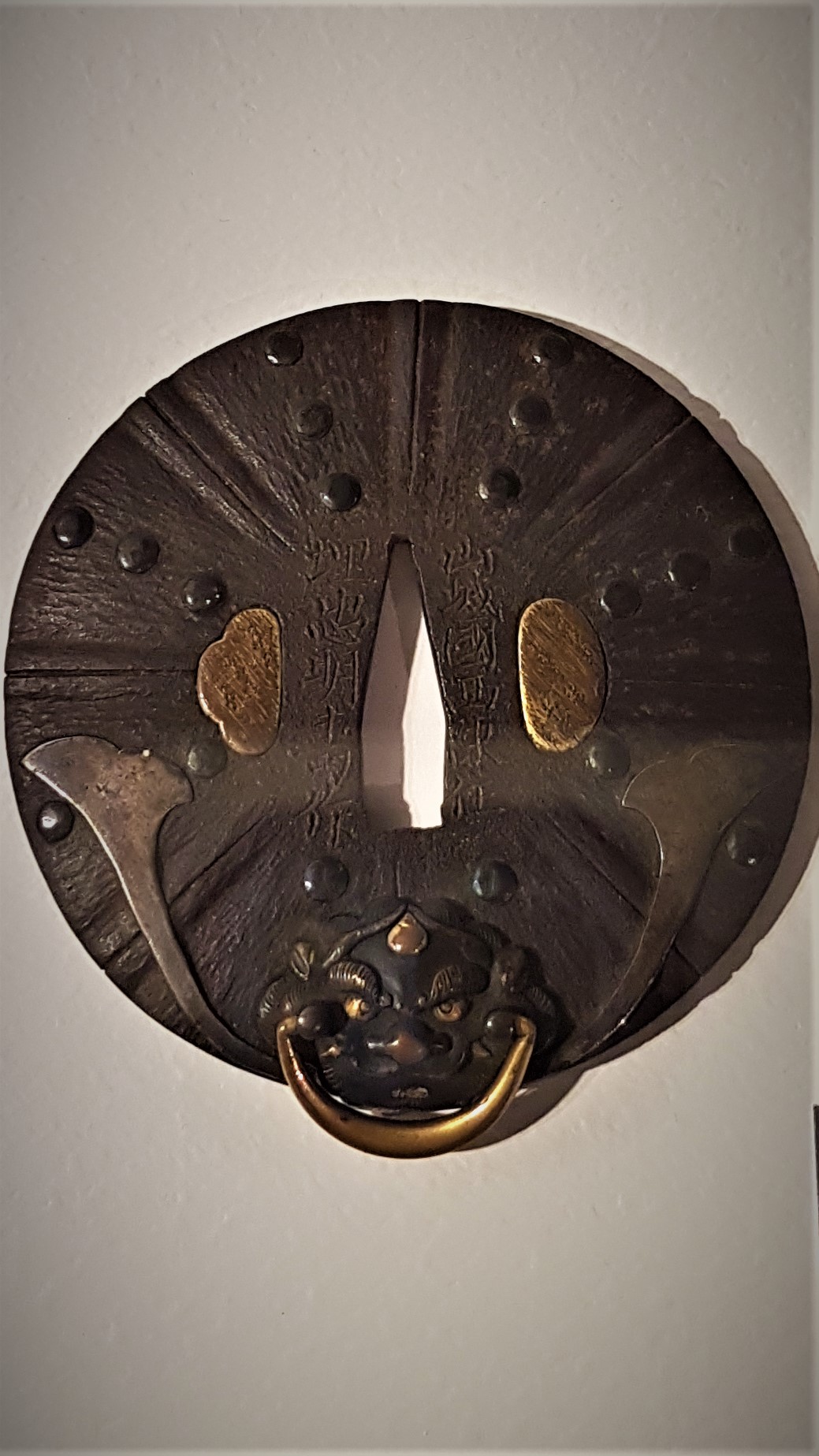 Tsuba en fer incrusté de suaka, shibuichi et cuivre jaune. Fin Edo. Photo JS Pietri pour Journal du Japon