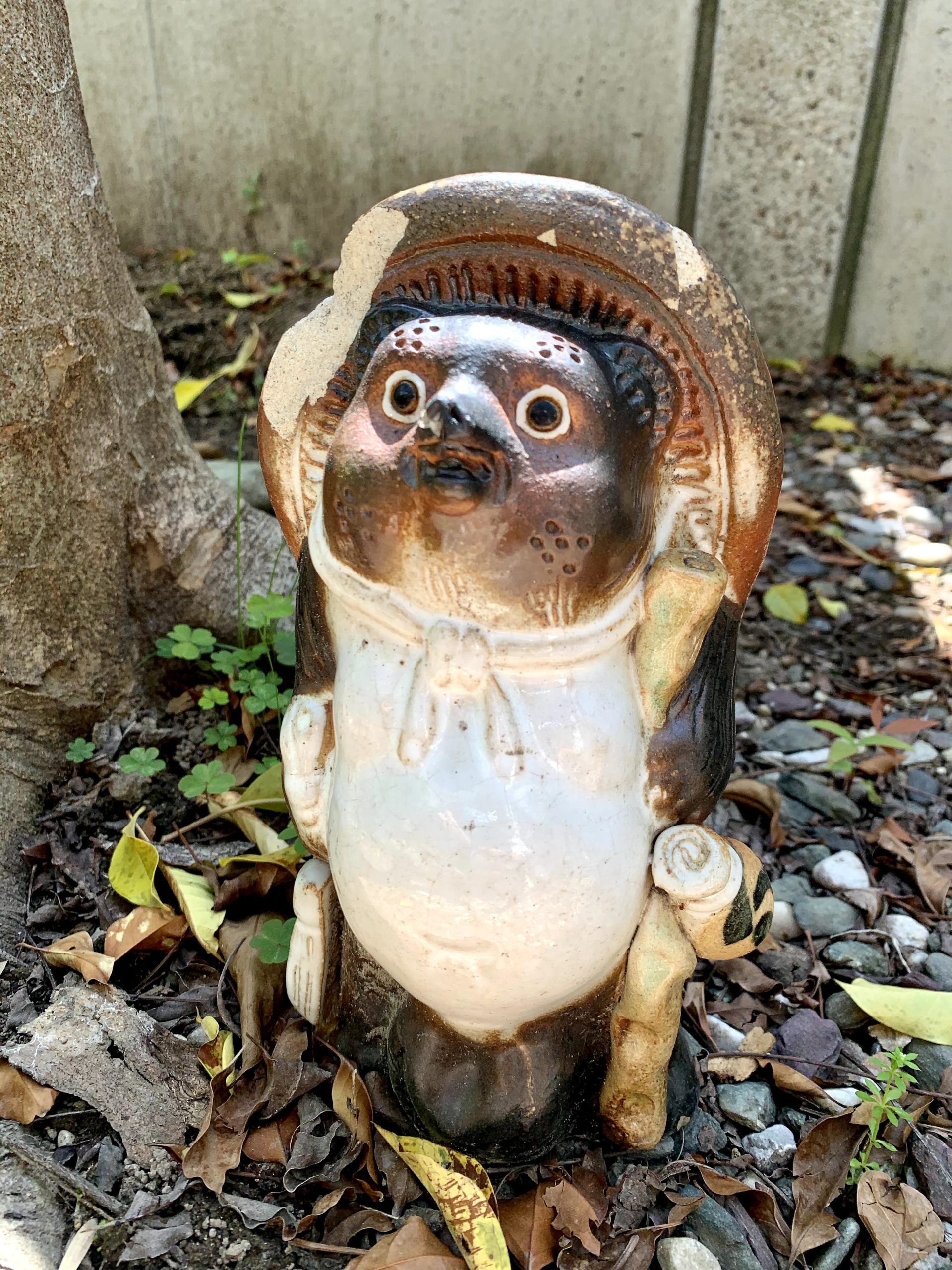 Avec ses airs de raton-laveur, le tanuki (タヌキ) est considéré comme un esprit ou gardien de la forêt, symbole de prospérité et de bonne fortune. C’est pourquoi des statues de tanuki trônent devant les restaurants et les magasins, mais aussi sur les perrons des maisons, et dans les jardins des particuliers.