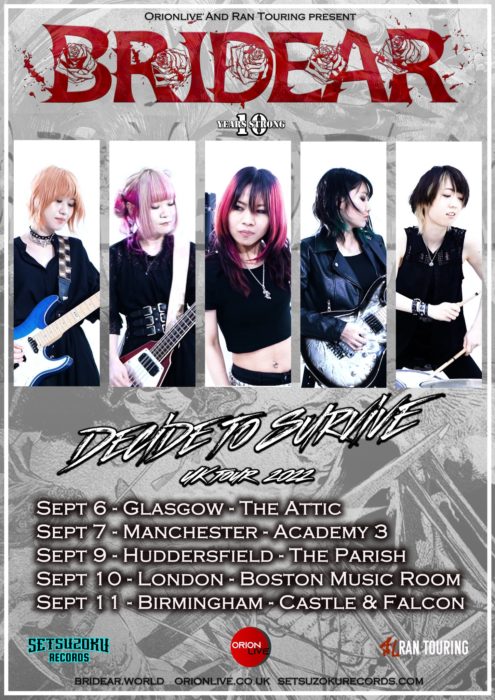 Le groupe de metal féminin BRIDEAR a annoncé une tournée européenne : Decide to Survive Tour 2022. Pour le moment seule les dates en Angleterre ont été annoncé, mais les autres dates devraient être annoncées prochainement. A n’en pas douter elles feront un petit détour par la France puisque c’était un des rares groupes à être venu en France en 2021…