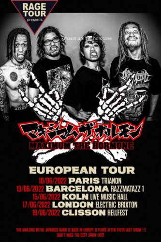 Le groupe qui déchire tout Maximum the hormone sera de retour en France le 10 juin au Trianon et le 19 juin au Hellfest (Clisson) – Le festival est complet -. Le quatuor devait venir à l’origine en juin 2020, deux plus tard nous allons enfin pouvoir profiter de ce concert. Les billets pour le meet & greet ont tous été vendu, restent pour les retardataires les billets normaux à 42 euros (Achetez votre billet).