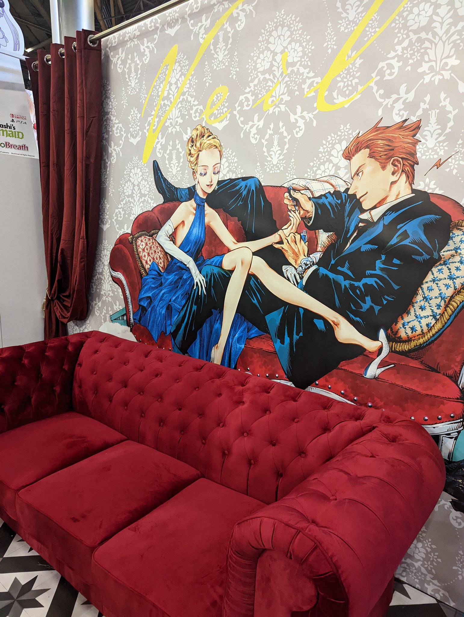 Parmi les stands que j’attendais de voir avec impatience, il y avait surtout ceux des éditeurs manga. Entre l’explosion du secteur manga durant le Covid, et l’absence de Japan Expo pendant deux ans qui a du leur faire économiser sur leur budget salon, chacun était au taquet pour proposer de beaux espaces de ventes. Et ça n’a pas loupé : pour sa première venue, Noeve GraphX a fait un très beau stand, avec un photocall aux couleurs de Veil et son canapé emblématique, et que dire du « village » Crunchyroll ? L’actuel repreneur de Kaze ne va faire que grandir dans les années à venir, mais se positionne déjà comme un géant. L’entrée du stand avec son torii orange n’était qu’un amuse-bouche avant de découvrir un mini village composé d’activité autour de licences animés et mangas de l’éditeur, d’une expo pour le prochain Dandadan, et une boutique.