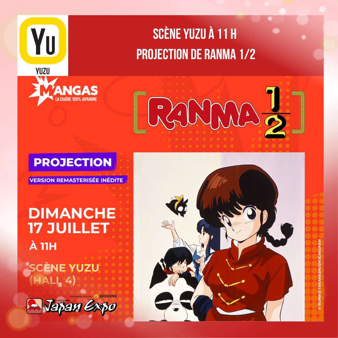 La chaîne Mangas (groupe Mediawan anciennement le fameux et mythique groupe AB), nous propose en avant première, la diffusion de deux épisodes de Ranma 1/2 en HD et non censurées pour ainsi nous donner l’eau à la bouche car une diffusion est prévue sur cette chaîne mythique dès le 29 août 2022 !