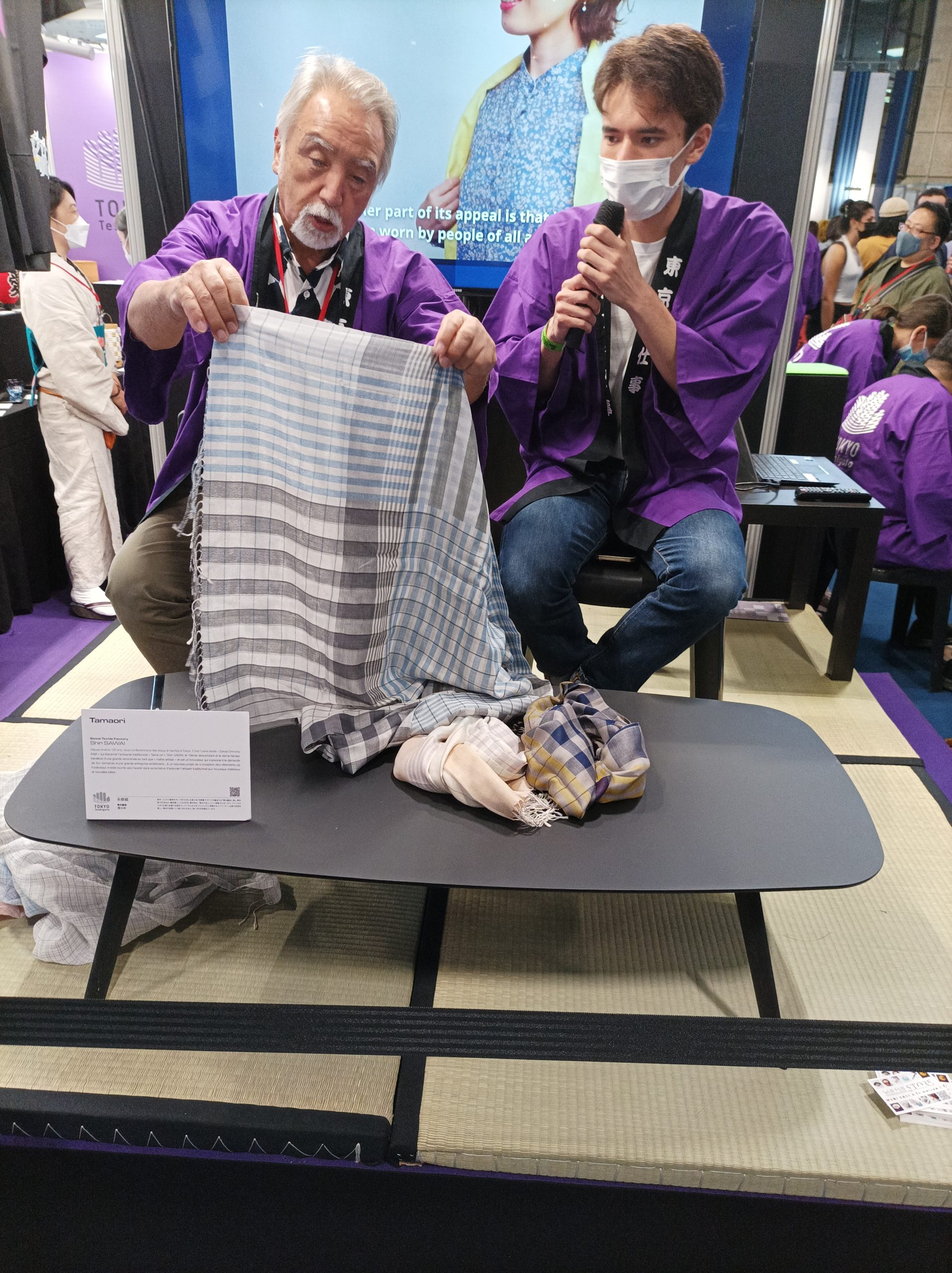 Shin SAWAI, fabricant tokyoïtes de Kimono, au pavillon Wabi Sabi. Photo de Léo Thomas pour ©Journal du Japon – Tous droits réservés