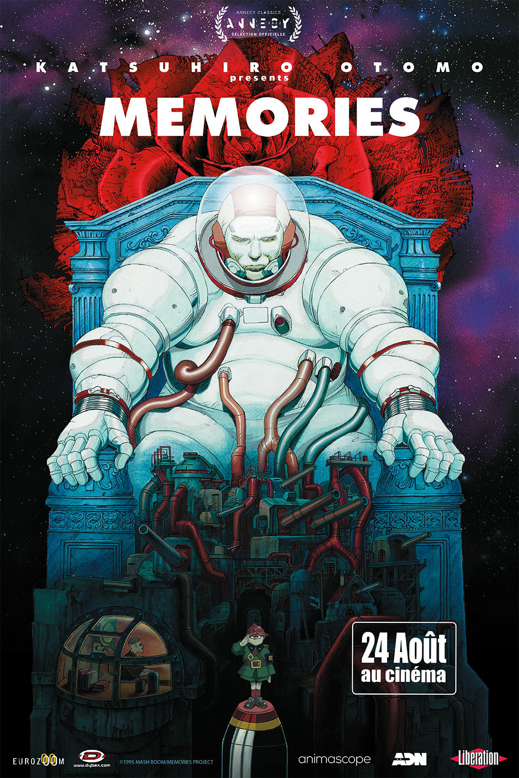 Pile deux ans après la ressortie au cinéma du plus culte que culte Akira, Katsuhiro OTOMO (mais pas que) est une nouvelle fois à l’honneur : le 24 août sort Memories, long-métrage qui cache en réalité trois moyens-métrages réalisés par trois talents différents. Un classique des années 90 qu’il serait dommage de louper pour tout amateur d’animation japonaise.