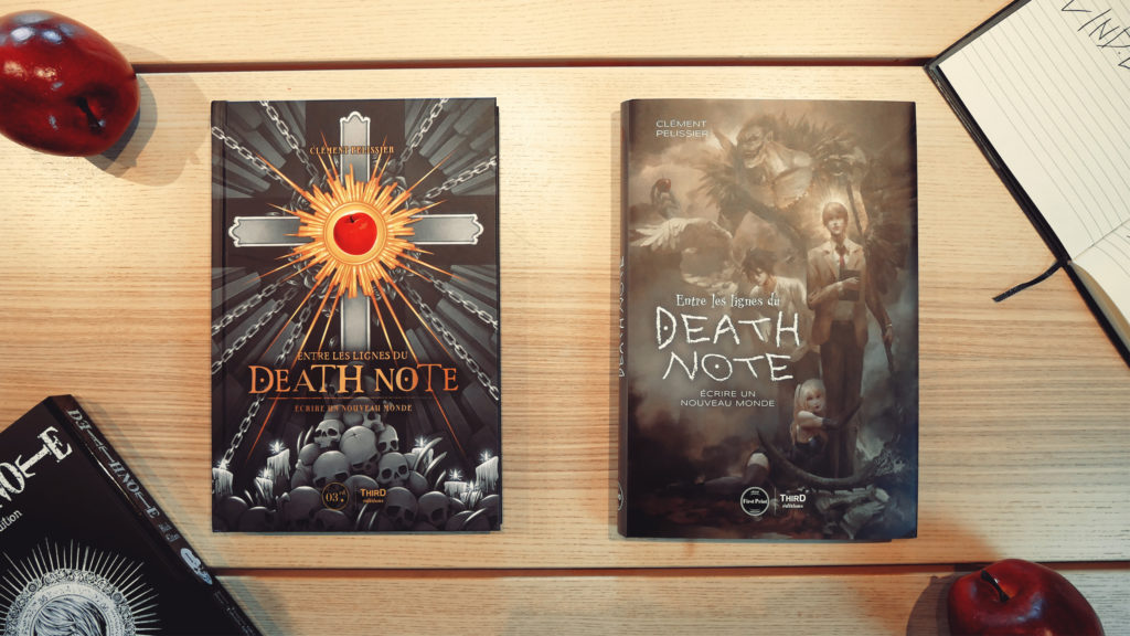 Je suis déjà sorti assez mal en point du travail sur ma thèse qui a duré presque 5 ans… Alors je n’ose même pas imaginer les dégâts que l’on risque à travailler 14 ans sur un sujet. Si c’était le cas, je pense que le livre aurait été divisé en quatre volumes d’environ 500 pages chacun (rires) ! Plus sérieusement, l’envie d’écrire sur Death Note couvait en moi depuis 14 ans, depuis le collège, c’est exact. Pourtant, en pratique, il y a eu les études, la vie en général, et j’avais besoin de me former intellectuellement (et de me discipliner) un peu mieux. Third Éditions a été cet élan dont j’avais besoin pour concrétiser les choses. Le livre découle donc bien d’un travail qui aura duré un peu plus d’un an. Sincèrement, c’est le projet le plus difficile que j’ai jamais achevé et il y a eu au cours de la rédaction des moments où j’ai très sérieusement douté d’arriver à concrétiser ce livre. Dans ce genre de cas, l’appui moral de mon responsable d’édition a été capital. Le dévoilement progressif des couvertures aussi, car même si je ne peux pas être tout à fait objectif, je les trouve magnifiques ! Une année intense donc… Mais je suis tellement ravi de pouvoir présenter ce livre.