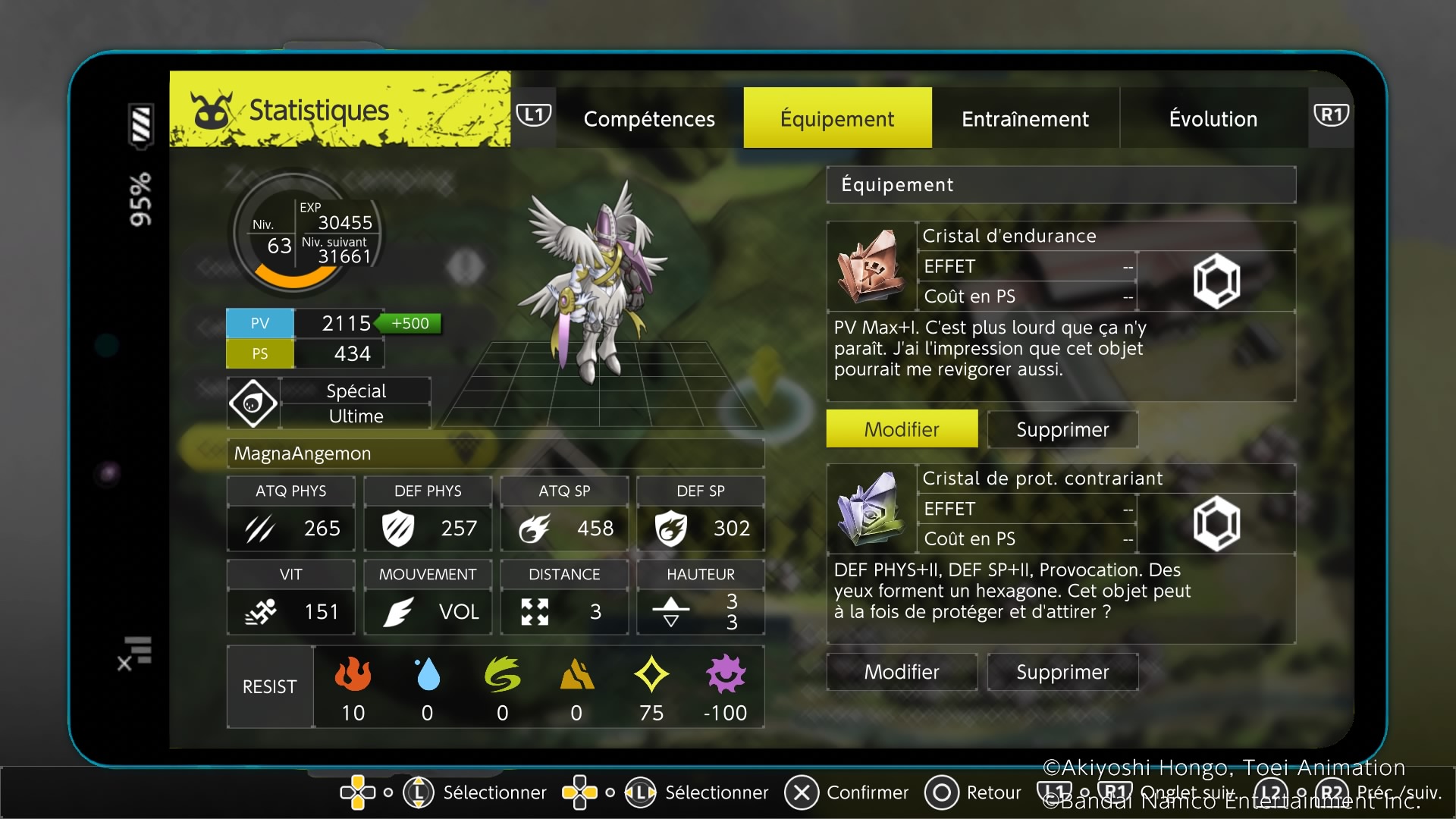Elles se débloquent progressivement dans l’histoire pour les digimon du groupe et les consommations de points d’action sont tellement ridicules que l’on transforme les digimon tout le temps et que l’on n’est jamais à court de PS. Il est cependant dommage que la difficulté soit mal jaugée : on enchaîne toujours les combats sans grande difficulté… Pire, la stratégie à adopter se résume à foncer dans le tas, faire évoluer les digimon à leur forme la plus avancée, utiliser ses points de déplacement et les attaques les plus puissantes. Chaque digimon a 2 emplacements pour apprendre des techniques ou gagner des bonus/résistances : cela simplifie (peut-être trop) la gestion des digimon. En effet, les combats sont tellement à l’avantage du joueur qu’il est frustrant de devoir courir après les adversaires qui fuient le combat…