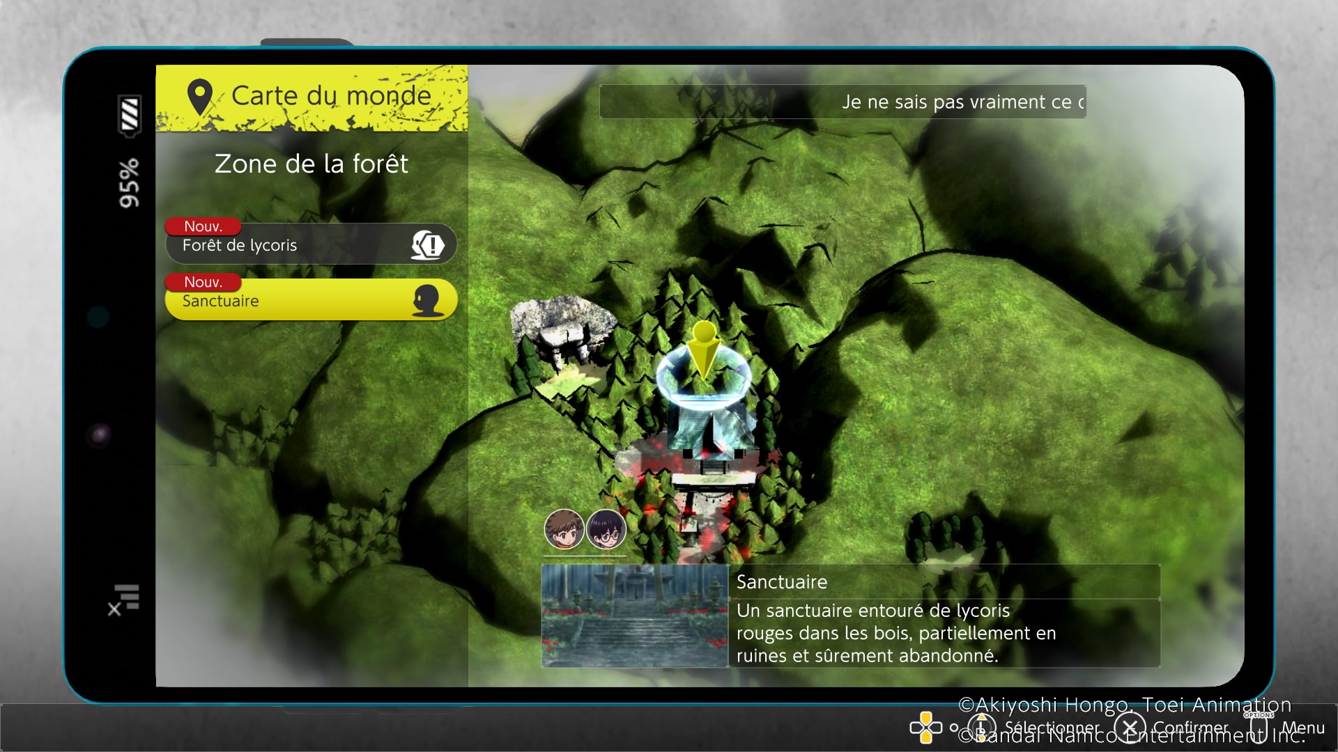 Digimon Survive est un Visual Novel classique. Les fans de ces récits vidéo-ludiques ne seront pas dépaysés. Les personnages discutent et les choix de répliques permettent au récit d’emprunter différentes voies. A cela s’ajoute un peu d’action avec des phases d’exploration de la carte. En effet, le jeu distille progressivement le passé et les secrets des enfants mais le développement de la psychologies des héros peut manquer de profondeur à certains passages. Les réactions sont ainsi parfois un peu trop caricaturales ou prévisibles. Pour arriver au bout de l’histoire, il faut compter une trentaine d’heures et les nombreux textes sont traduits en français. Les non-anglophones apprécieront cet effort pour rendre accessible le jeu à tout le monde. La traduction est de plutôt bonne qualité et par exemple, les erreurs d’Agumon (comme « nez-colle » au lieu de « école ») sont bien adaptées.