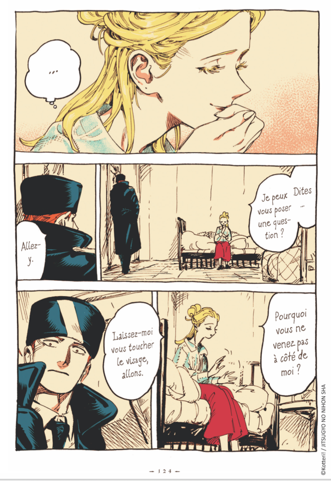 Elle et lui sont nés sur internet, d’abord sans avoir de nom, puis Emma et Aleksander se sont dévoilés au fil des illustrations et des planches. Un voile pudique couvre cette relation dont on en sait pas grand-chose. Les lecteurs combleront eux-mêmes les trous. Où se passe l’action ? Quelque part entre la Russie et la Grande-Bretagne, une ville sans nom, mais qui nous semble proche. Quand se passe l’histoire ? Allez savoir, dans les années 40, 50, 60… Quelle importance après tout ? Elle et lui semblent intemporels, figés dans univers irrémédiablement révolu et insaisissable.