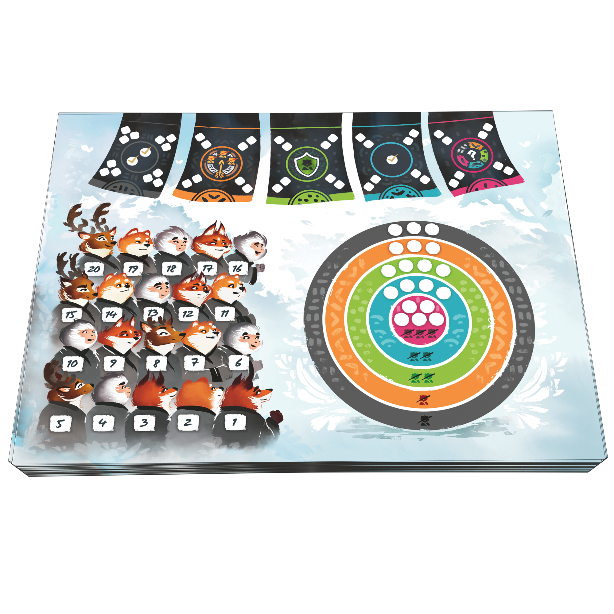 Vous l’avez donc compris : Kyudo est un Roll & Write, et même un Roll & Fight puisque toute la mécanique repose sur une bataille permanente avec vos adversaires pour perdre le moins de spectateurs tout en complétant votre cible le plus rapidement possible.