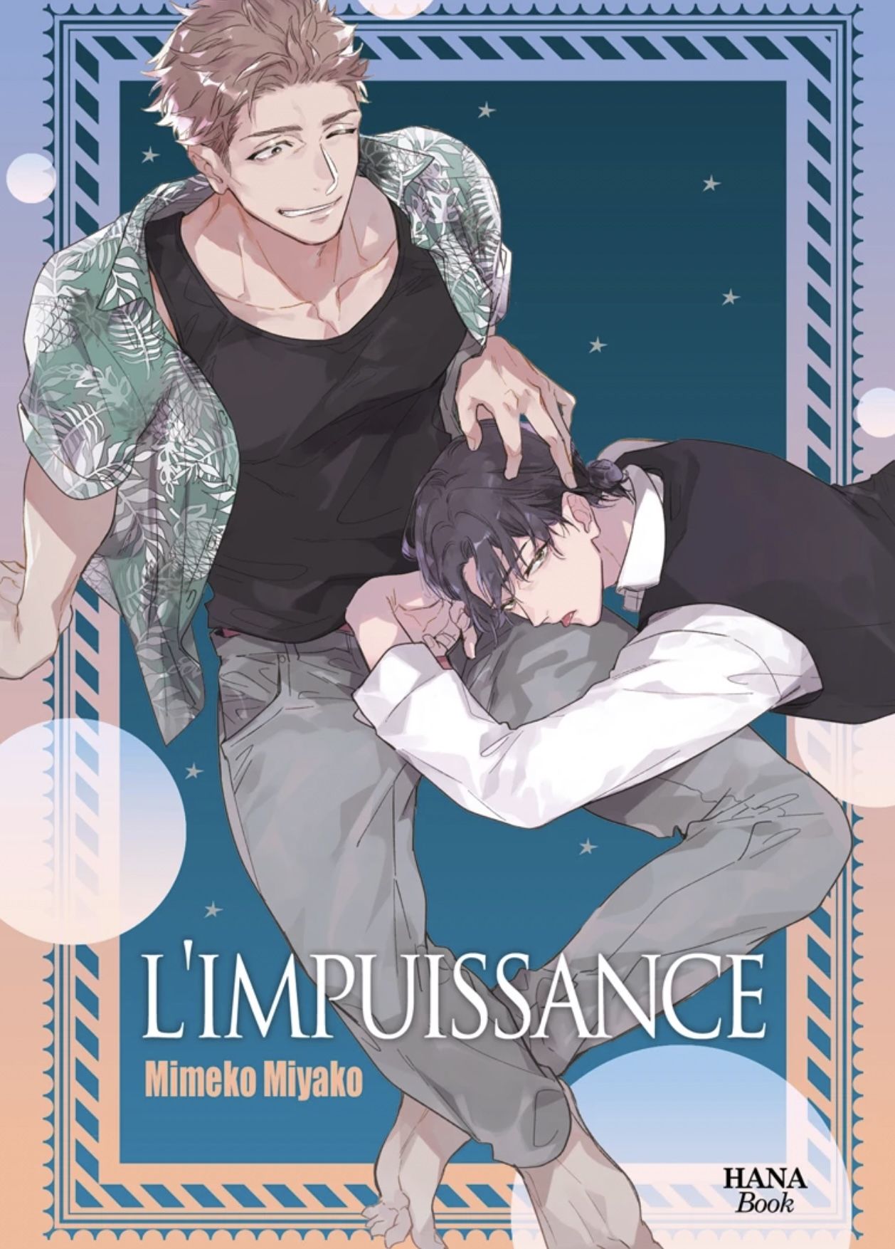 Ainsi, on y suit les aventures d’un patron d’un bar gay, Ryô Hodogaya, et d’un de ses ex, Umezaki. Voulant qu’on le laisse seul, Ryô dit à tout le monde qu’il est impuissant tandis que Umezaki crie sous tous les toits ses prouesses sexuelles. Mais un jour, Umezaki va à sa rencontre car il serait devenu impuissant ! Commence alors une relation entre les deux qui va faire ressurgir leur passé et transformer leur nouvelle relation ? Pour en savoir plus sur ce couple « impuissant » face aux aléas de la vie, lisez L’Impuissance, un one-shot donc, qui sortira le 4 novembre prochain au prix de 7,95 €. (Andres)