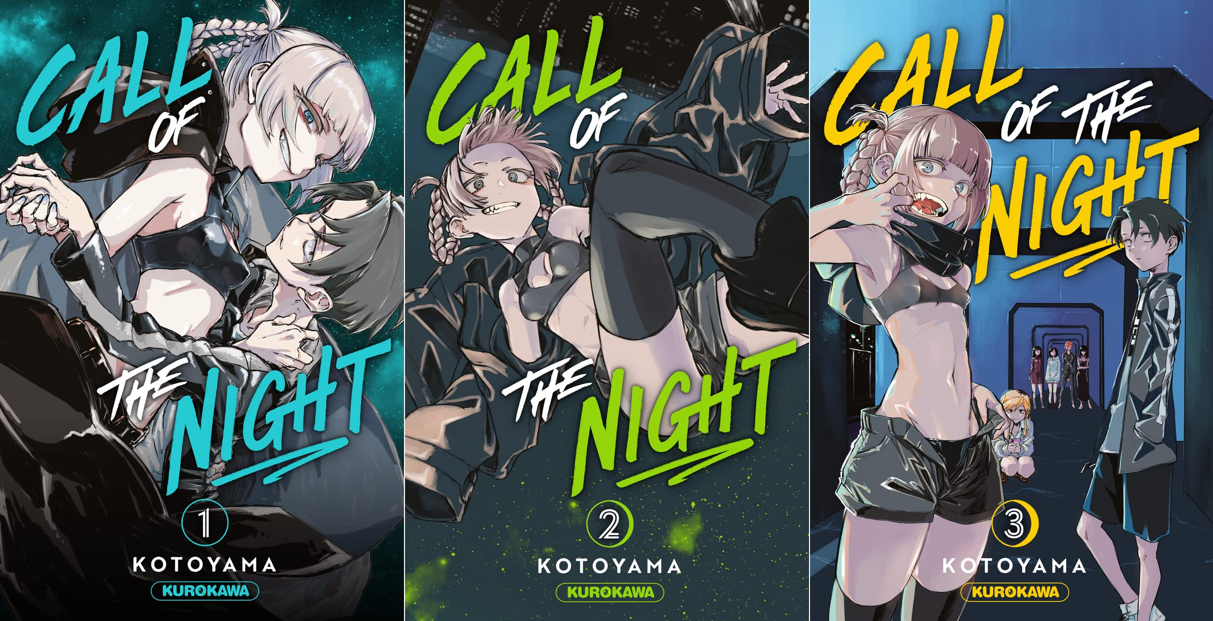 Les couvertures des 3 premiers tomes de Call of the Night chez Kurokawa – Call of the Night © 2019 by Kotoyama/SHOGAKUKAN