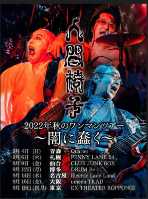 ʺNingen Isuʺ… Ces deux mots diront peut-être quelque chose aux lecteurs d’Edogawa Rampo (1894-1965), auteur de romans policiers et père du mouvement littéraire et artistique dit de l’ero-guro nansetsu (érotisme-grotesque absurde). Ningen Isu est en effet le titre original de l’une de ses très nombreuses fictions, parue en français sous le titre de La chaise humaine aux éditions Piquier. Moins connu dans l’hexagone, Ningen Isu est également le nom qu’a choisi de prendre en référence à cet auteur l’un des groupes de hard rock japonais majeur de ces dernières décennies et qui fête cette année ses 33 ans d’existence. Journal du Japon a souhaité faire découvrir à ses lecteurs cette formation atypique de trois musiciens passionnés qui ont su conquérir et rassembler au fil des années des générations d’amateurs de musique.