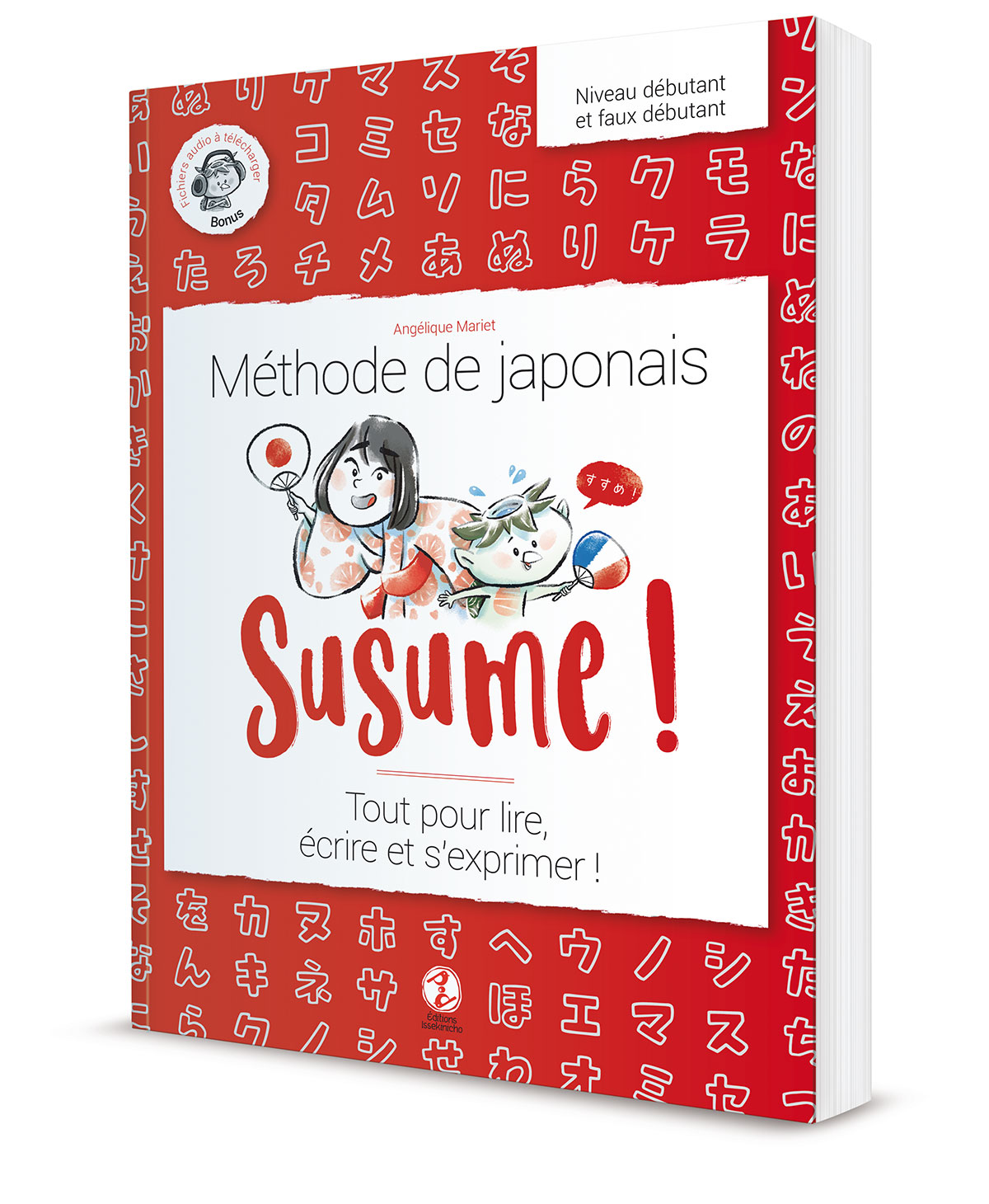 Les fondamentaux, se présenter, parler de sa famille et de soi et bien d’autres points serviront aux débutants et faux débutants pour se mettre au japonais et s’améliorer. Cette méthode contient un ensemble de textes à apprendre, de leçons (grammaire, conjugaison, vocabulaire) et d’exercices comme le tracé de kanji pour que l’apprenant progresse à son rythme et puisse parfaire son japonais. Des annexes et des fichiers audios viennent parfaire cet ouvrage qui donnera force et courage. Susume ! (Fonce !) Apprend le japonais sans peurs !