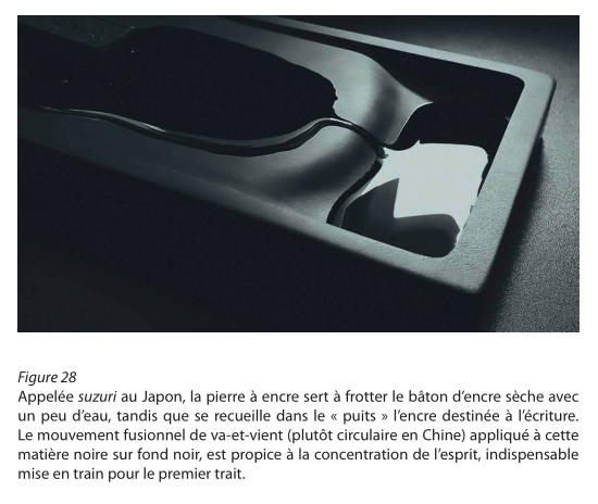 Elle coulait de source avec l’encre, si je peux dire. Spécialisé dans l’étude des outils de l’écriture chinoise et japonaise, la suprématie de la couleur noire dans la calligraphie et la peinture monochrome m’a paru offrir de belles échappées à l’imaginaire, spécialement quand on broie l’encre noire dans l’encrier noir.