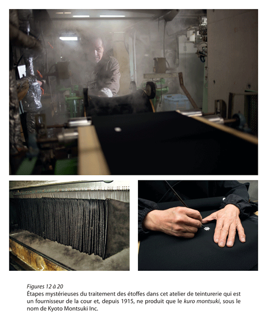 Ce qui nous conduit tout naturellement au troisième chapitre consacré au noir des étoffes. Un noir intense, absolu, est présenté et c’est fascinant. Un noir éclatant même en plein soleil. Un procédé maintenu secret. Une beauté profonde qui bouleverse ! Les photographies des ateliers en donnent un aperçu qui titille notre curiosité, et on a envie d’aller découvrir ce noir unique de nos propres yeux !