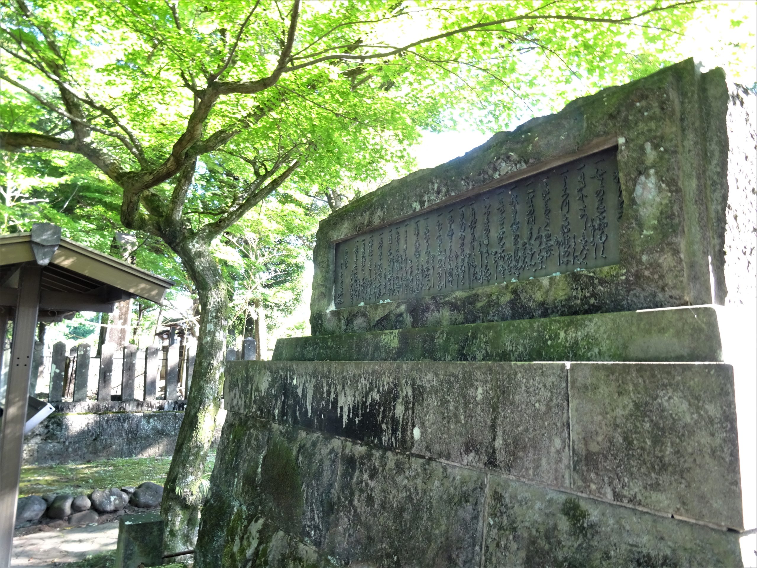 - Le panneau de pierre où sont gravées les phrases du Dokkôdô ©Nina Le Flohic pour Journal du Japon