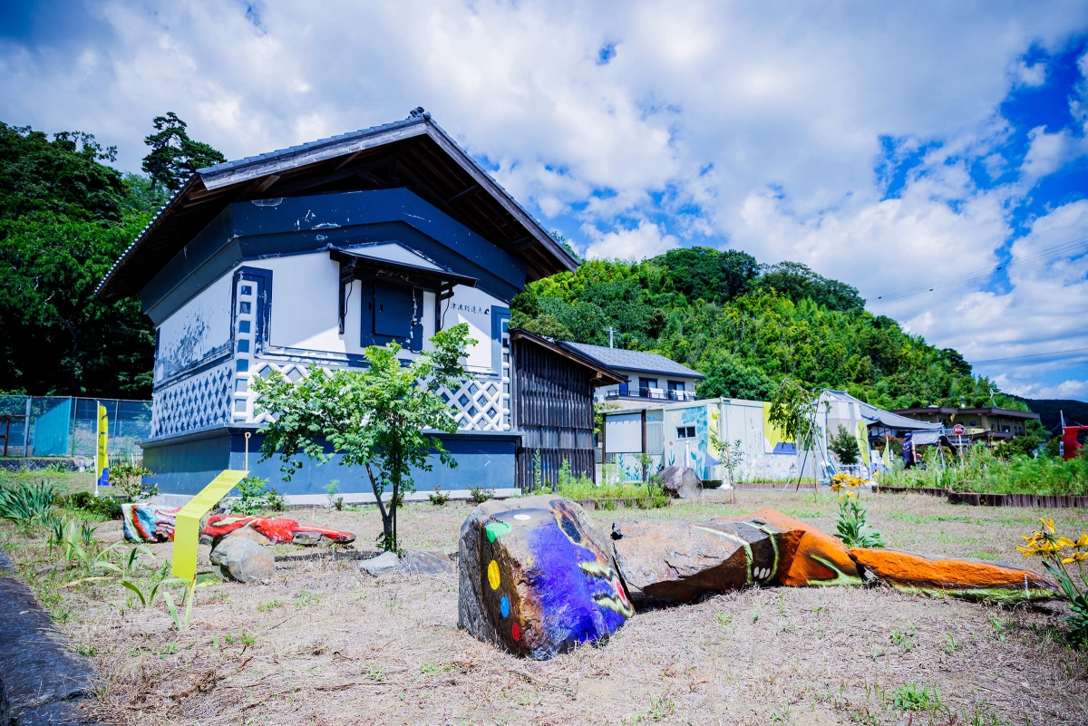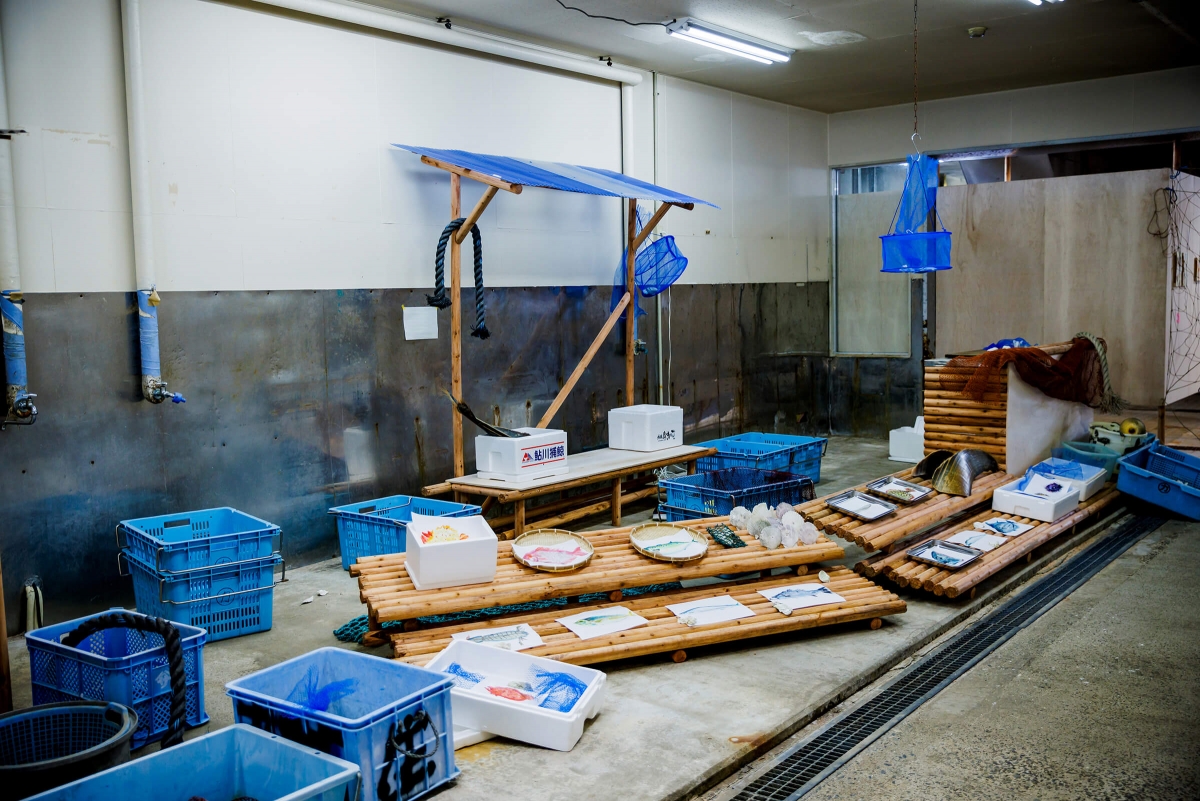 Il s’agit d’avancer tout en préservant la mémoire du passé. Les œuvres d’art – peintures, sculptures, installations dans les intérieurs ou en pleine nature – invitent les visiteurs à percevoir le monde d’une façon autre et à pénétrer une nouvelle réalité. Il en est ainsi pour SWIMMING TOWN de l’écrivaine et artiste Mariko ASABUKI et son partenaire Kanji YUMISASHI, une installation dans un entrepôt désaffecté aux murs délabrés recouverts de peintures murales et remplis d’objets liés au contexte maritime. Les peintures ainsi que les assiettes, les figurines représentant des poissons et d’autres animaux marins et les boîtes en plastique vides, parsemés dans l’espace désolé sont tirés de l’expérience vécue et inspirés des histoires racontées par les habitants de la région.