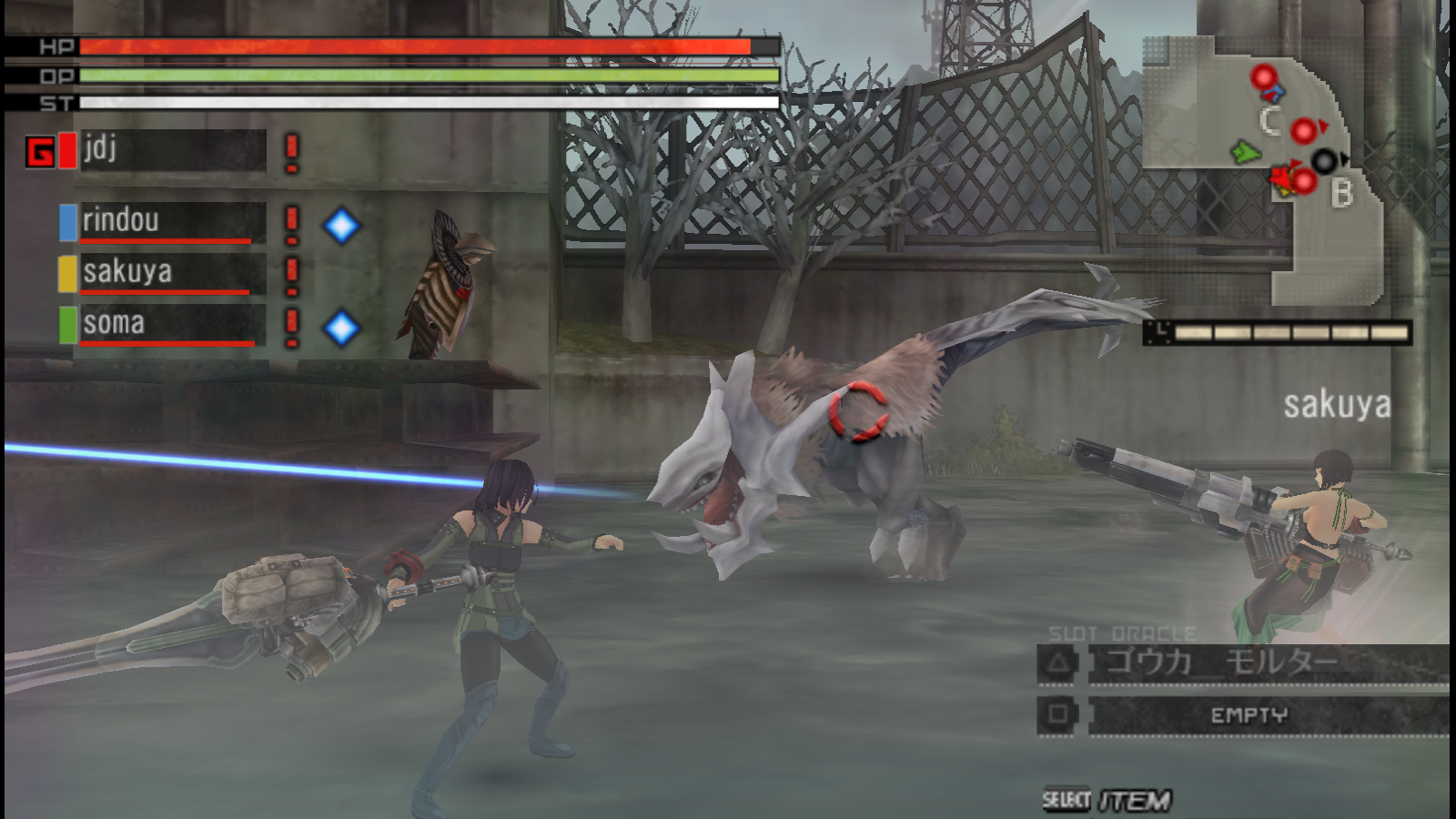 auront aussi des faiblesses ou indifférences. Chaque type de canon a ses propres munitions (points d’oracle) qui s’utilisent tous d’une façon propre, là encore selon plusieurs propriétés (tirs en ligne droite, laser, etc). Ceux-ci peuvent être restaurés en utilisant un objet précis, frappant un monstre au corps-à-corps ou en le dévorant. Toutes les armes ont deux modes d’assaut différents (un normal et un lourd, ou deux éléments différents) en utilisant les touches carré et triangle. Dans le cas du CàC, on peut mélanger les deux pour former des enchaînements.