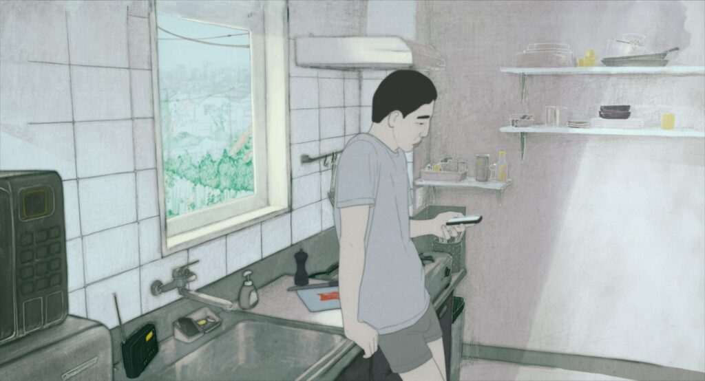 Ainsi, si, par exemple, l’animation de Földes saisit bien l’impression de réalisme magique murakamienne, notamment grâce à intelligent usage du flou, qui laisse à penser que les quelques personnages principaux évoluent dans un monde indéfini, évanescent, fantomatique et toujours à deux doigts de la disparition, certains passages, au contraire, s’éloignent du matériel d’origine.