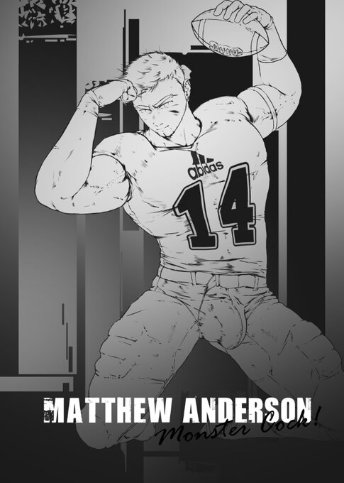 Avant la création de Matthew, j’ai effectué une vingtaine d’illustrations sur le thème du football américain avec de nouveaux personnages : Drake, Genji, Steven, Mike et plus tard Matthew. Initialement c’était une série d’illustrations juste pour le fantasme des sportifs (j’ai fait également une série sur les militaires ^^). Ces illustrations ne sont plus diffusées sur les réseaux. Et cette publication dans le volume 1 est aussi un petit teaser en noir et blanc, pour un événement planifié à l’été 2024.