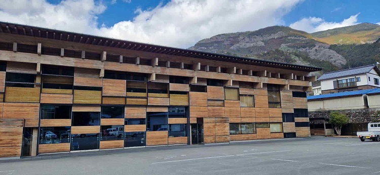 Fabriqué avec du cèdre local, cet hôtel de ville a été imaginé comme un lieu de rassemblement. Il contient de grands espaces intérieurs pouvant accueillir la communauté de Yusuhara en cas d’événement festif ou de catastrophe naturelle. Il possède deux particularités : une maison de thé (ou Chado) au centre de l’atrium, qui rappelle l’hospitalité des citoyens de la ville ; de larges portes d’entrée pivotantes, qui peuvent se replier comme un paravent en été pour s’ouvrir complètement et laisser entrer le vent et la lumière, afin de briser la barrière intérieure/extérieure en permettant à ces deux éléments naturels de pénétrer au sein de cette structure artificielle.