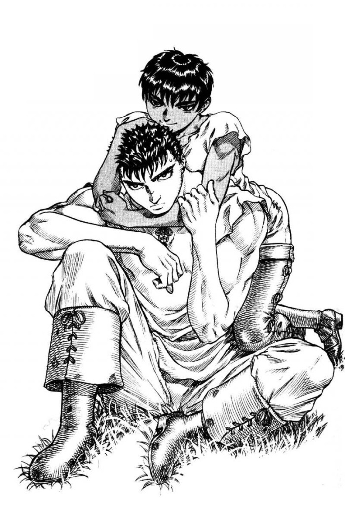 Mais il ne faut pas s’y tromper. Si la romance est une des caractéristiques du shôjo, ou plus généralement des mangas ciblant un public essentiellement féminin, il est très courant d’en retrouver ailleurs. Il nous vient en tête Berserk (Kentaro Miura), le seinen par excellence dont l’histoire d’amour entre Guts et Casca (ci-contre) va aller jusqu’à influencer le cours de l’histoire… Idem pour les shônen, qui ne sont pas épargnés (doit-on vraiment citer le triangle Naruto-Sakura-Hinata ?). Il en va de même pour les yaoi et les yuri, toujours avec des degrés d’implication de romance différant d’un manga à l’autre (avec les sous-genres qui en découlent tels les shônen-aï et les shôjo-aï). Il n’y a pas de partie pris, chaque histoire à sa manière de traiter ce thème.