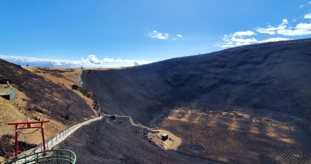 C’est pourquoi, à l’est du cratère se dresse un sanctuaire shinto dédié à la fille d’Oyama-Tsumi ; le dieu des montagnes, de la mer et de la guerre. Les japonais adressent leur prière en ce lieu pour avoir un accouchement sans danger et réussir leur mariage.