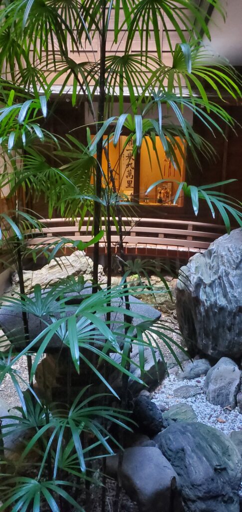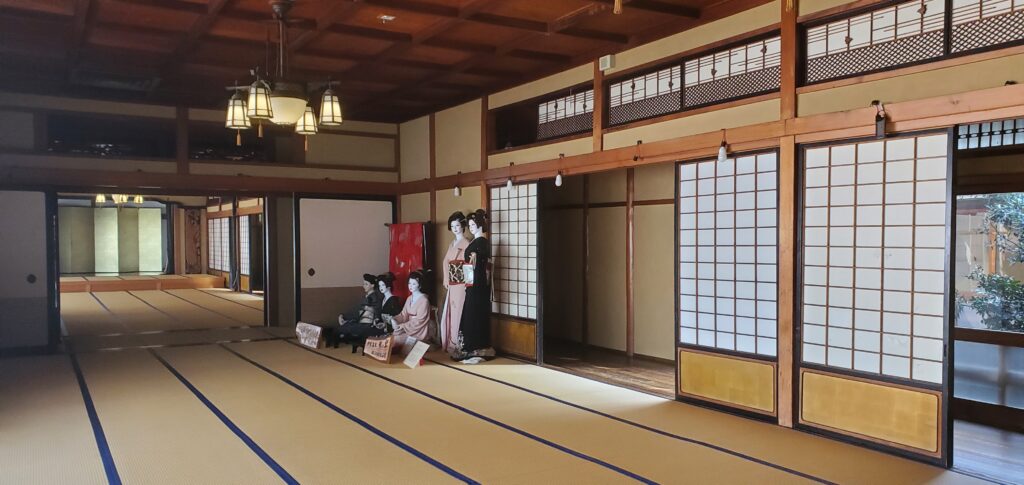 La plus belle pièce reste tout de même le hall de réception, une immense salle de 120 tatamis, avec une scène à chaque extrémités. Les repas des clients pouvaient être servis ici sur des tables individuelles, tout en offrant un spectacle de danses et de musiques effectué par les maiko et geishas entre autres.