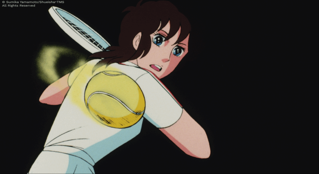 Mais revenons au sujet principal : le tennis. Comme évoqué plus tôt et dans le prolongement de la série de 1973, Dezaki n’utilise pas le tennis pour créer des moments de sport au dénouement imprévisible mais comme révélateur des émotions et des dilemmes internes des personnages. Le réalisateur construit alors un langage visuel unique, notamment à l’aide de techniques d’animation dite “limitée” pour faire parvenir ces émotions aux spectateurs.