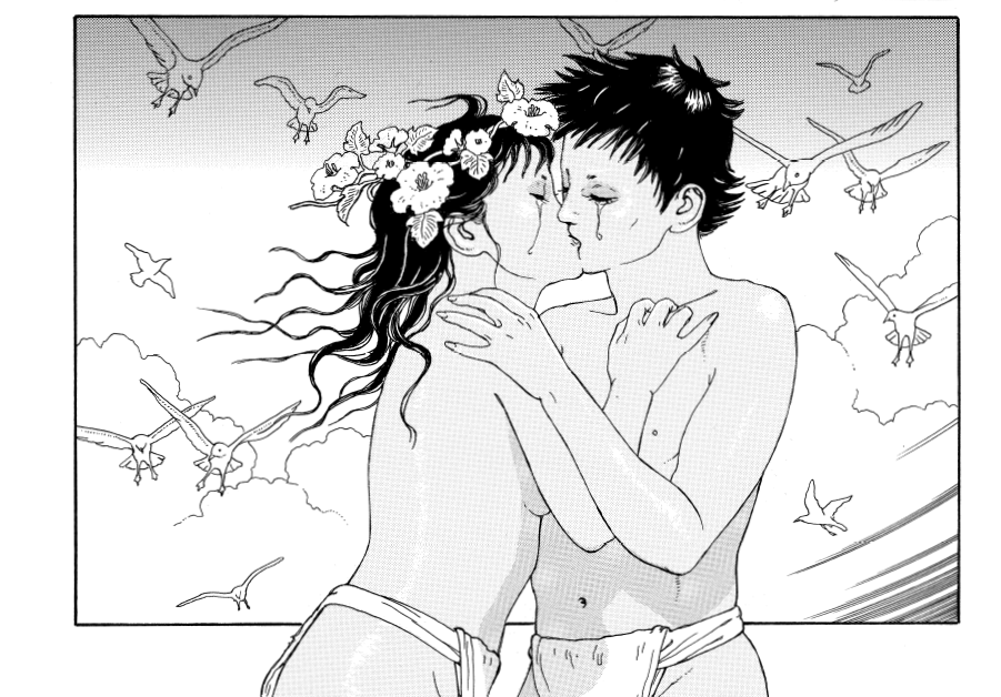 Cependant, Ayako à son tour ne tarda pas à changer de comportement. Tout comme moi, elle se mit à me contempler d’une manière différente…d’un regard bien plus doux, humide de larmes. Et je remarquai parallèlement que le contact de mon corps la saisissait à la fois d’un sentiment de honte et de tristesse.