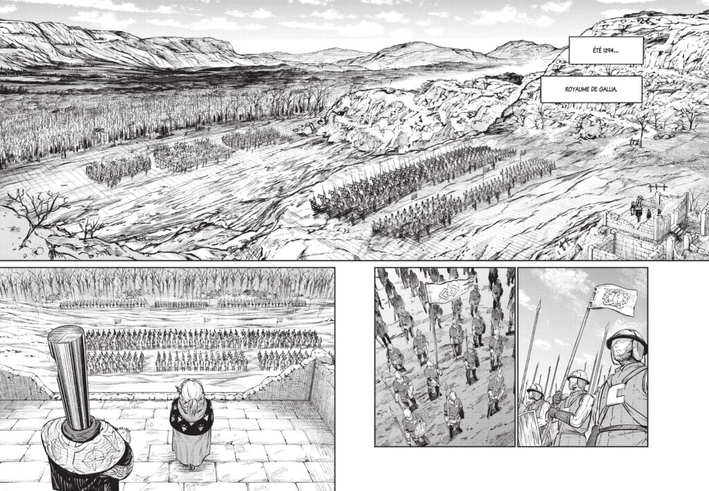 Contrairement à ce que l’on pourrait s’attendre, The Bugle Call dépasse très largement le simple cadre de la dark-fantasy ou du récit de guerre. En s’appuyant sur une mise en scène captivante, une esthétique sensorielle puissante et une narration à plusieurs niveaux, ce manga nous propose une véritable réflexion sur le pouvoir, la foi et le conditionnement des esprits. À travers les personnages du Pape et des Branchus, les auteurs nous interrogent ouvertement sur la manière dont les institutions religieuses peuvent manipuler les croyances et les individus pour imposer leur domination. Et avec le personnage de Luka, le lecteur se retrouve face aux questionnements intérieurs de ceux qui se retrouvent, bien malgré eux, à devoir incarner des systèmes qu’ils ne comprennent pas ou qu’ils désapprouvent.