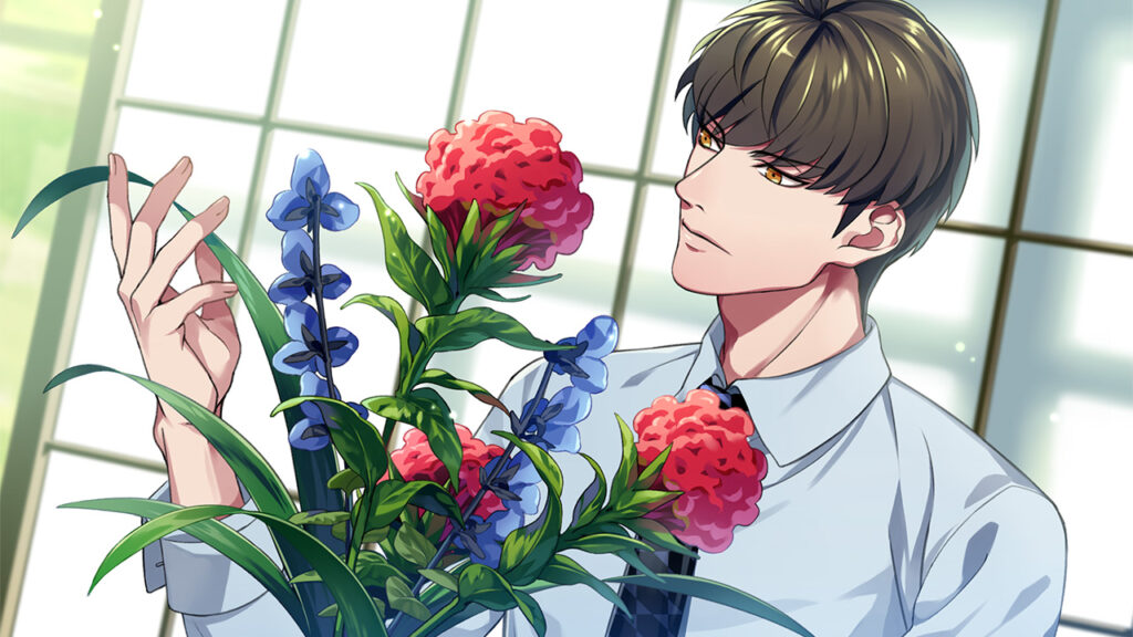 Oui, vous avez bien lu. La liste des romances est composée de cinq hommes. Mais suivant certaines conditions, il est possible de débloquer deux routes supplémentaires que nous vous laissons le soin de découvrir. Attardons-nous plutôt sur les routes « de base ». Le premier est notre ami d’enfance, Hino Kagutsuchi, qui est aussi à l’origine du voyage vers Okunezato. Amoureux de l’héroïne, il est une sorte de chevalier servant, tentant de garder les hommes trop collants à distance. Au sang chaud, il peut vite monter dans les tours… Et il adore les choses mignonnes.