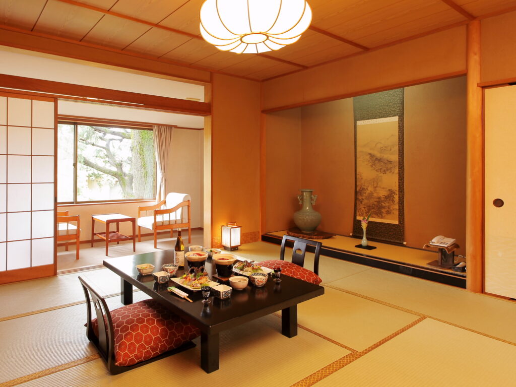 Nous avons 19 chambres. Elles ont toutes des toilettes privées, mais pas forcément une salle de bain. Toutes sont en tatami, avec des futons. Certaines sont assez grandes pour accueillir jusqu’à 10 personnes. On peut aussi combiner deux ou trois chambres pour un groupe ou une famille.