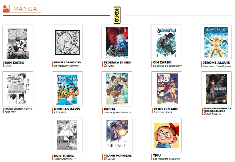Enfin, comme les auteurs japonais deviennent difficiles à faire venir à Japan Expo, les auteurs français, européens et globaux (c’est à dire hors Japon), ont comme chaque année une place importante au sein du festival. Les éditions Kana, Ki-oon, Mana Books, Glénat Manga et le label 619 vous ont proposent donc pas moins 23 auteur(e)s en tous genres, résumés ci-dessous :