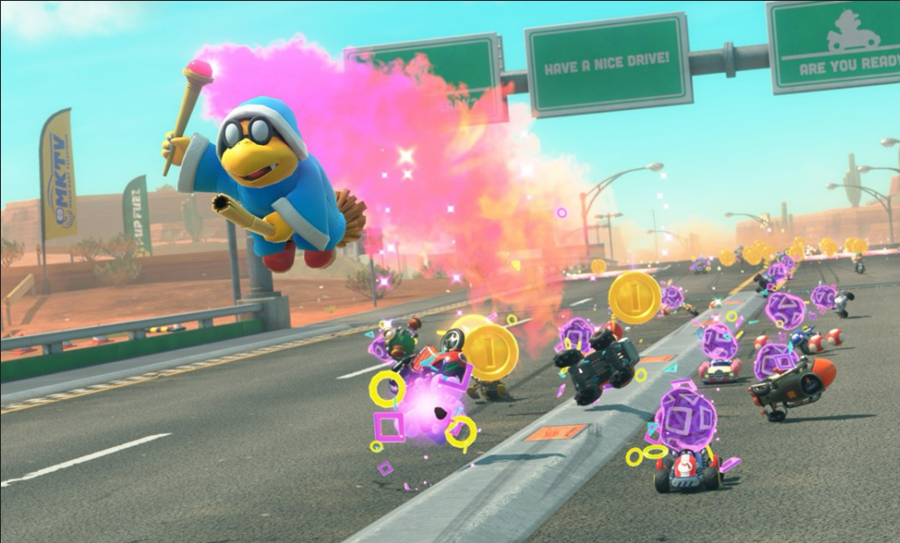 On avouera cependant qu’il faudra s’armer de patience pour pouvoir tous les obtenir. La nouvelle manière de débloquer ses personnages est unique en son genre. Un nouvel objet sur le terrain devra être lancé, il s’agit de la Sphère Kamek. L’objet aura pour effet de transformer les autres joueurs en un ennemi de Mario mais aussi de faire apparaître ce même ennemi sur le terrain pour rendre la course encore plus difficile. L’effet de l’objet dépend du circuit mais aussi de la chance que vous avez car le rendu est totalement aléatoire. D’un côté la rejouabilité en devient excitante mais d’un autre côté, une certaine frustration peut s’installer et donner l’impression à certains joueurs que l’obtention de l’intégralité des personnages est trop compliquée à atteindre.